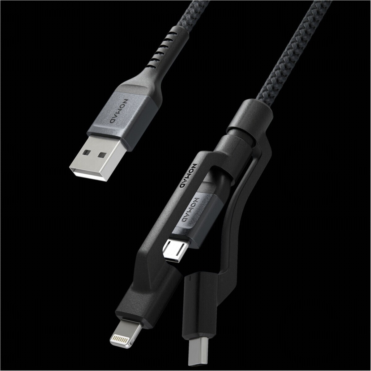 Nomad Kevlar USB-A to Universal Cable - здрав кевларен кабел за устройства с Lightning, microUSB и USB-C порт (30 см) (черен)