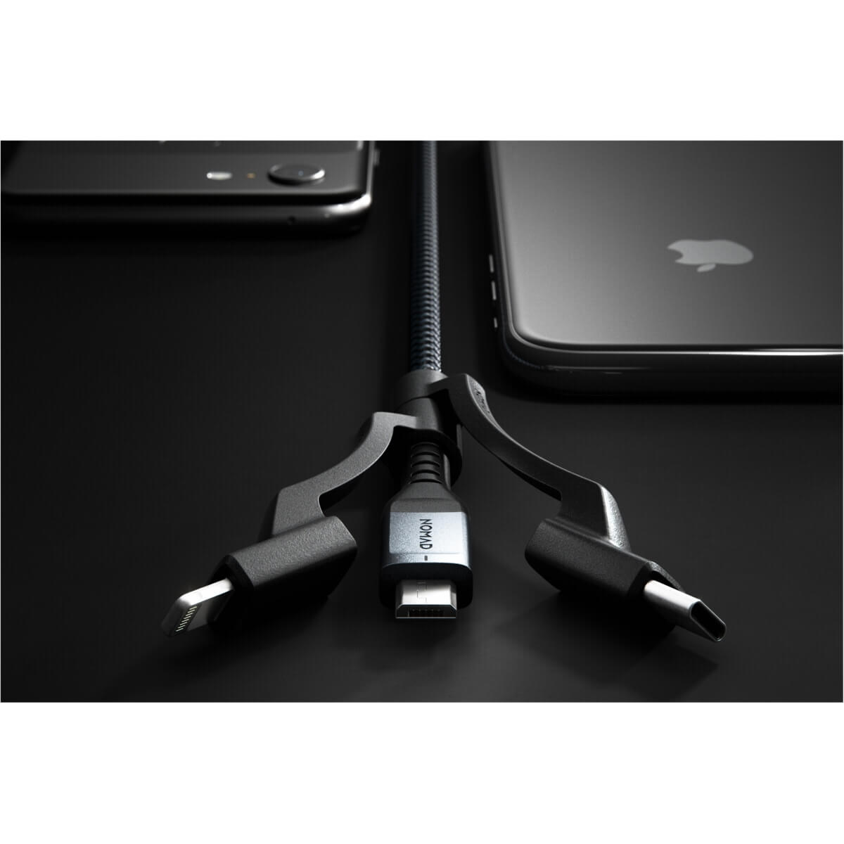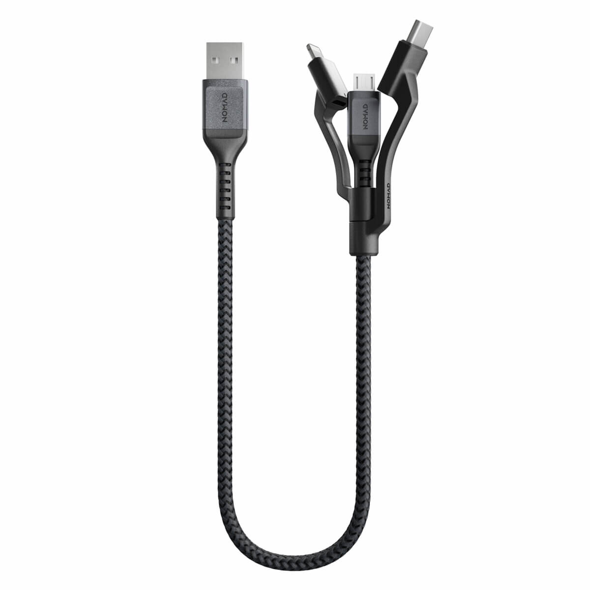 Nomad Rugged USB-A to Universal Cable - здрав кабел с въжена оплетка за устройства с Lightning, microUSB и USB-C порт (30 см) (черен)