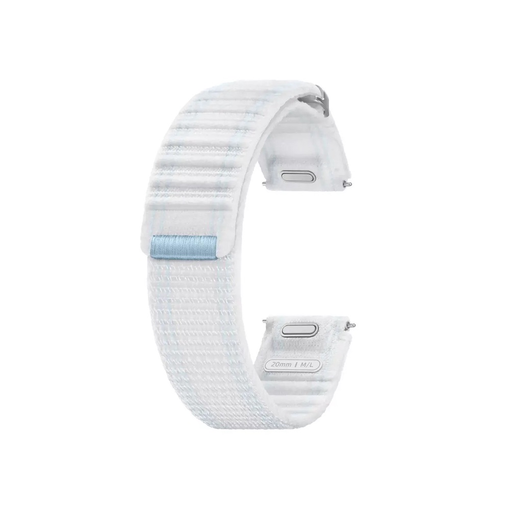 Оригинална текстилна каишка за Samsung Galaxy Watch, Huawei Watch, Xiaomi, Garmin и други часовници с 20мм захват - Samsung One Click Fabric Sport Strap 20mm M/L ET-SVL31LWE (бял)
