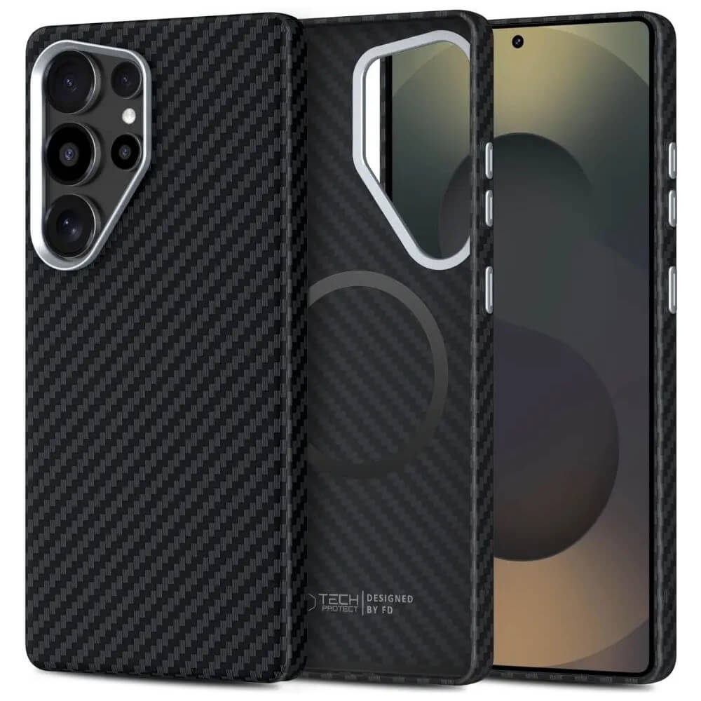 Поликарбонатов кейс с карбонов ефект с MagSafe за Samsung Galaxy S25 Ultra - Tech-Protect Ion Carbon case (черен-сребрист)