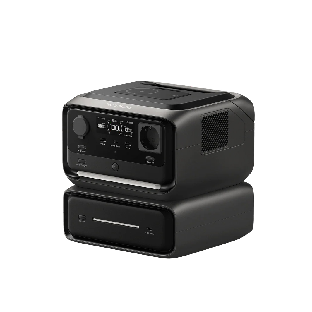 Портативна електростанция за зареждане на различна техника и устройства и отделна външна батерия Rapid 5000 mAh - EcoFlow RIVER 3 Plus (Wireless) Portable Power Station 286Wh (черен)