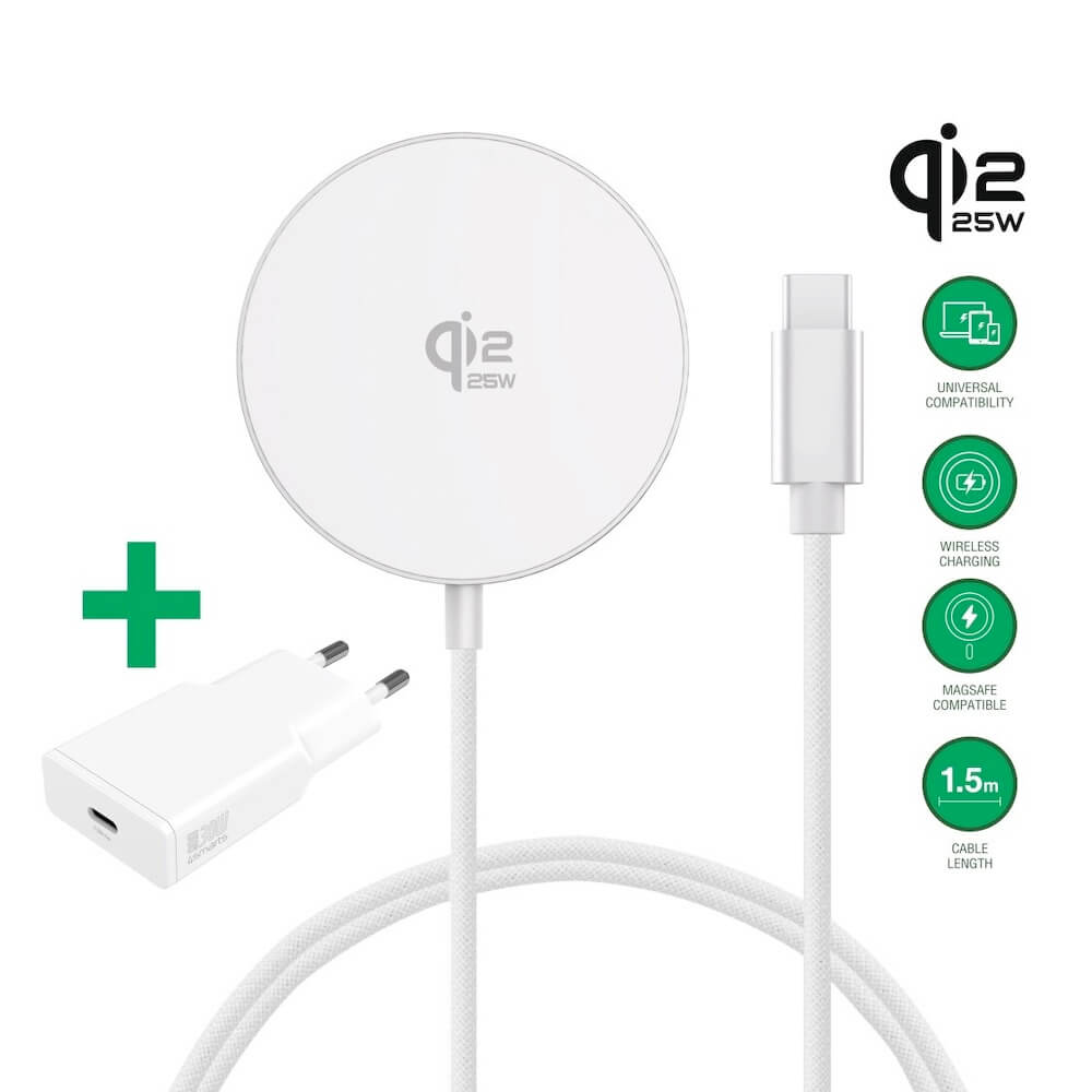 - Модел: Qi2 USB-C Magnetic Wireless Qi Charger 25W With 30W Wall Charger