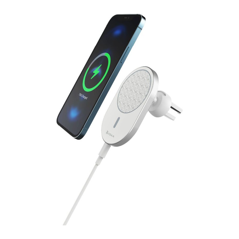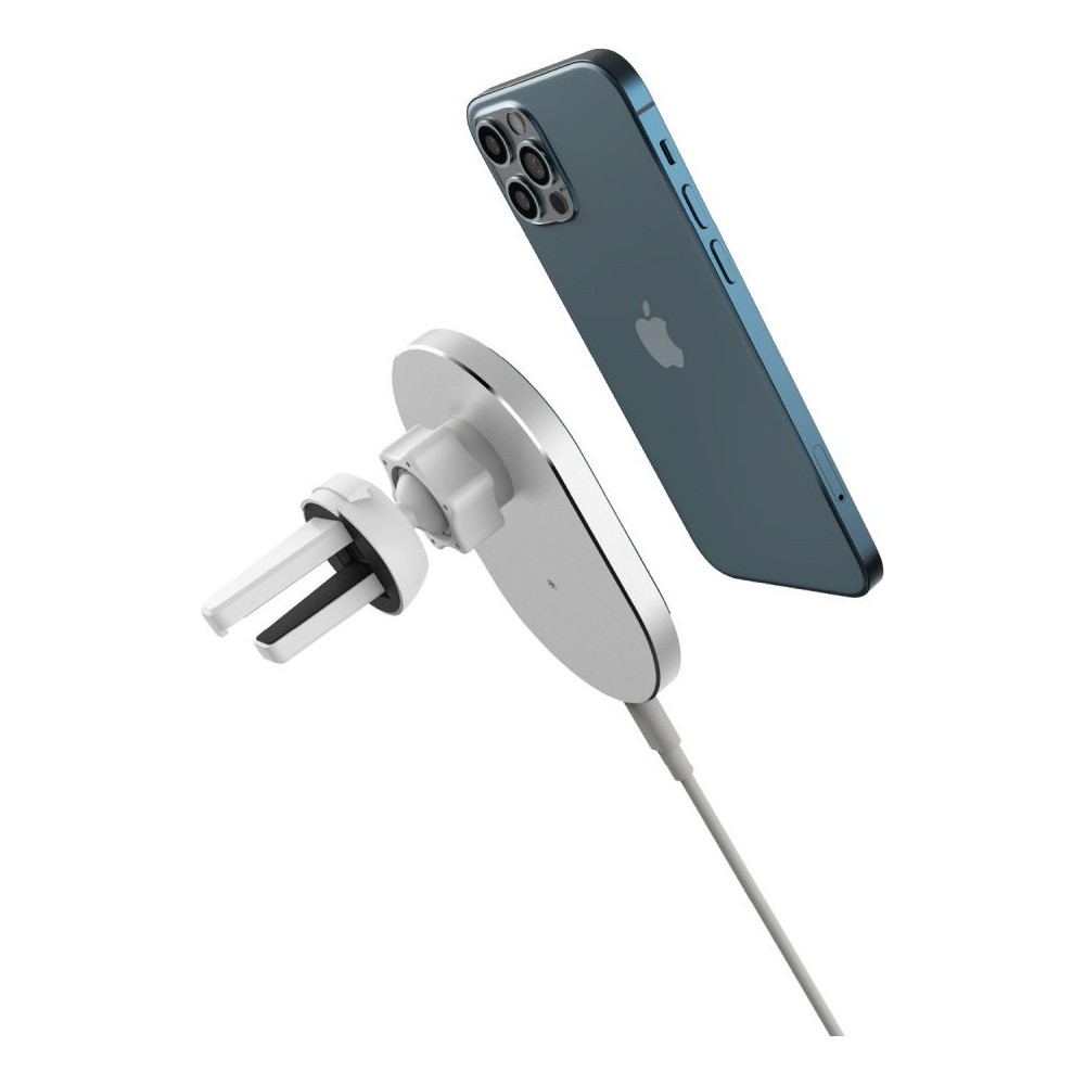 Поставка за радиатора на кола с безжично зареждане за iPhone с Magsafe - Adam Elements Omnia C2 Magsafe Wireless Charger Car Mount 15W (бял)