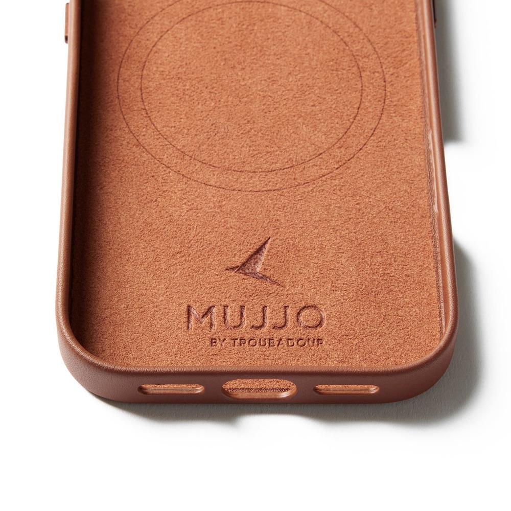 Премиум кожен (естествена кожа) кейс с MagSafe за iPhone 17 - Mujjo Full Leather MagSafe Case (кафяв)