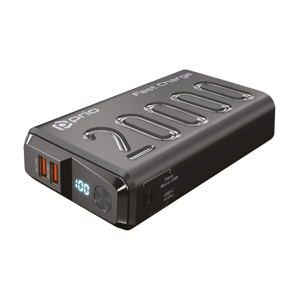 Преносима външна батерия с USB-C порт, и 2xUSB-A изхода - Prio Fast Charge Power Bank 20000 mAh 22.5W (черен)