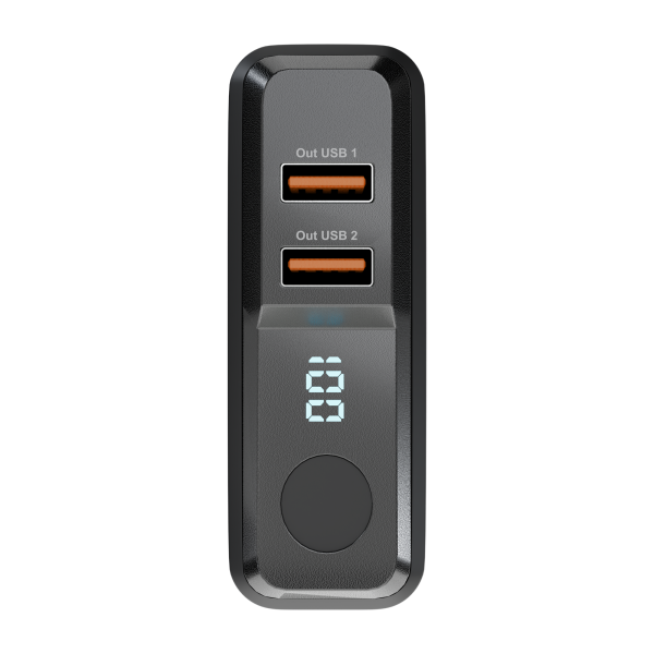 Тази качествена и компактна външна батерия е перфектна за активни потребители, които се нуждаят от надеждно зареждане на няколко устройства едновременно. С два USB-A изхода и един USB-C порт, можете да зареждате до три устройства в същото време, което е идеално за пътувания или при спешни ситуации.