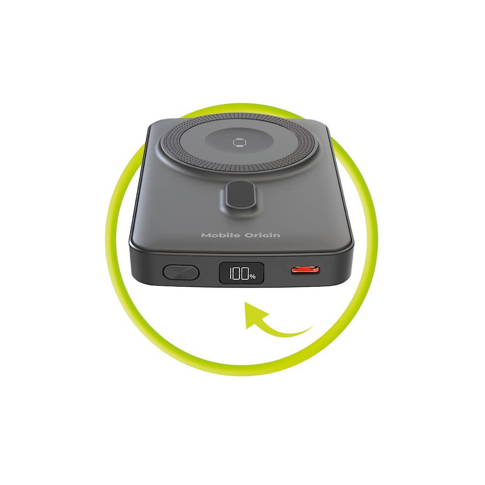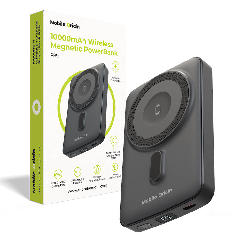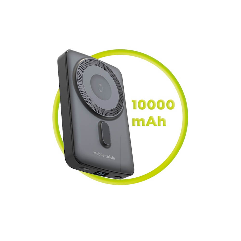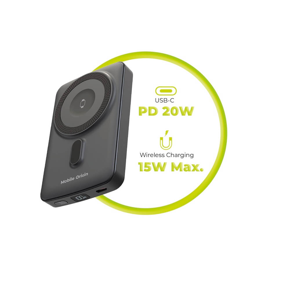 Преносима външна батерия с USB-C порт и безжично зареждане с MagSafe и Apple Watch - Mobile Origin PB9 Magnetic Wireless Charging Power Bank 10000 mAh 20W (черен)