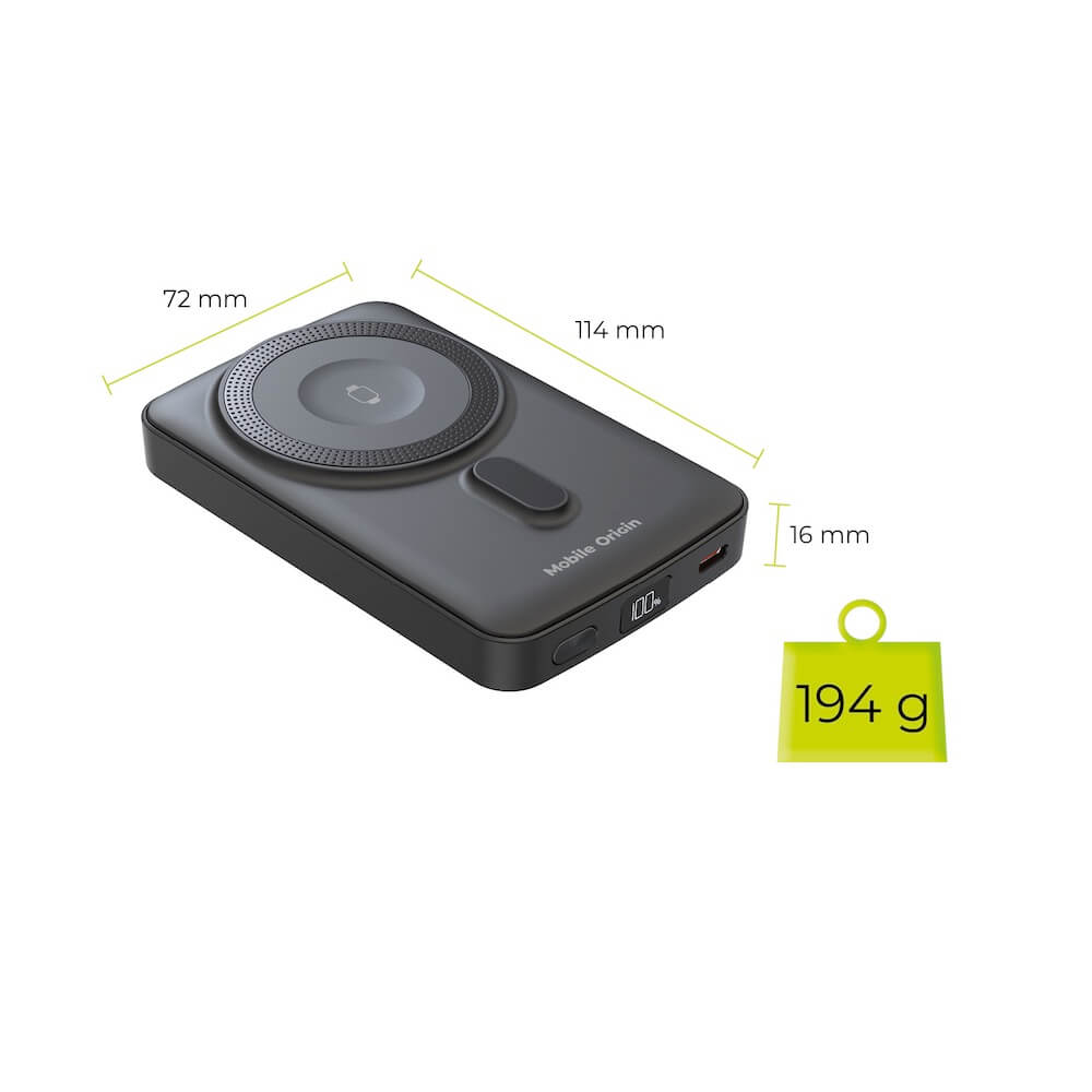 Тази преносима батерия е идеална за хора в движение, които искат да зареждат своите устройства бързо и удобно. Със своите вградени магнити, тя предлага стабилно захващане и лесна употреба, а допълнителният USB-C порт позволява зареждане на две устройства едновременно.