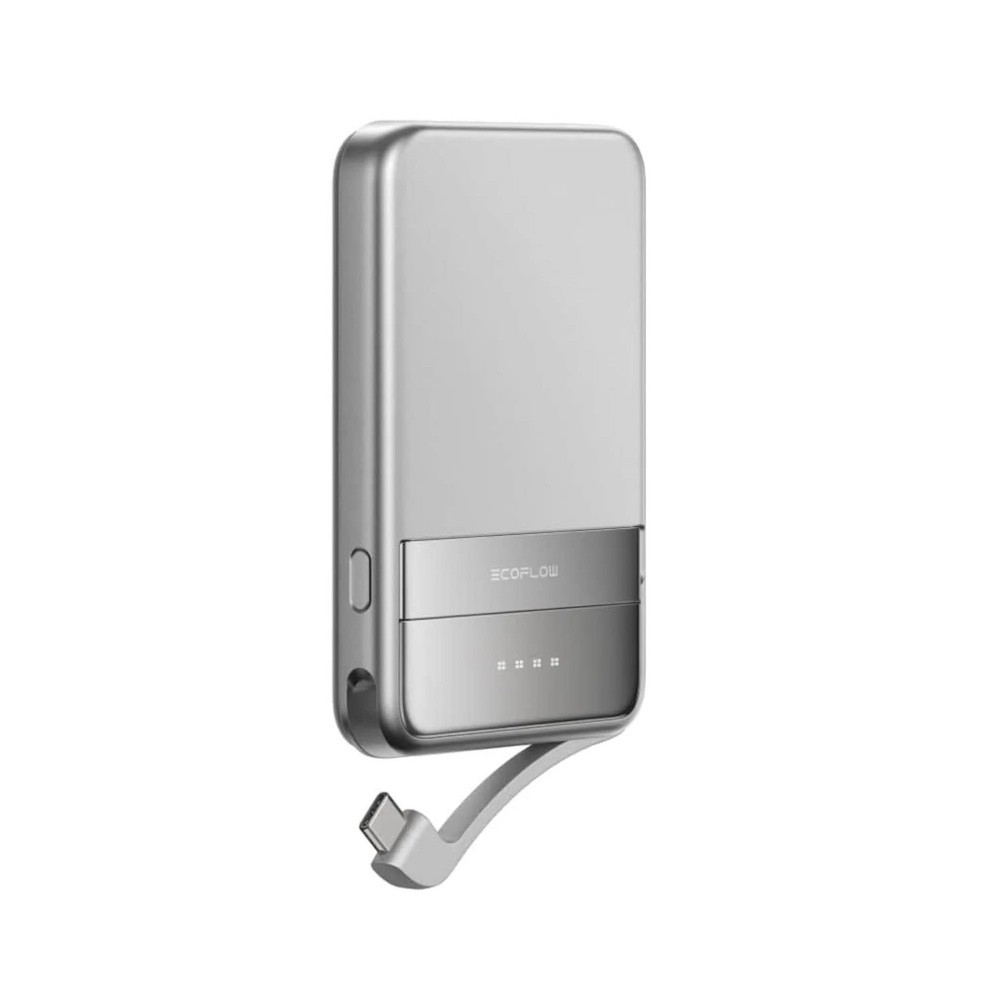 Преносима външна батерия вграден USB-C кабел, USB-C порт и безжично зареждане с MagSafe (сребрист) - EcoFlow Rapid Magnetic Wireless Charging Power Bank 5000 mAh 30W