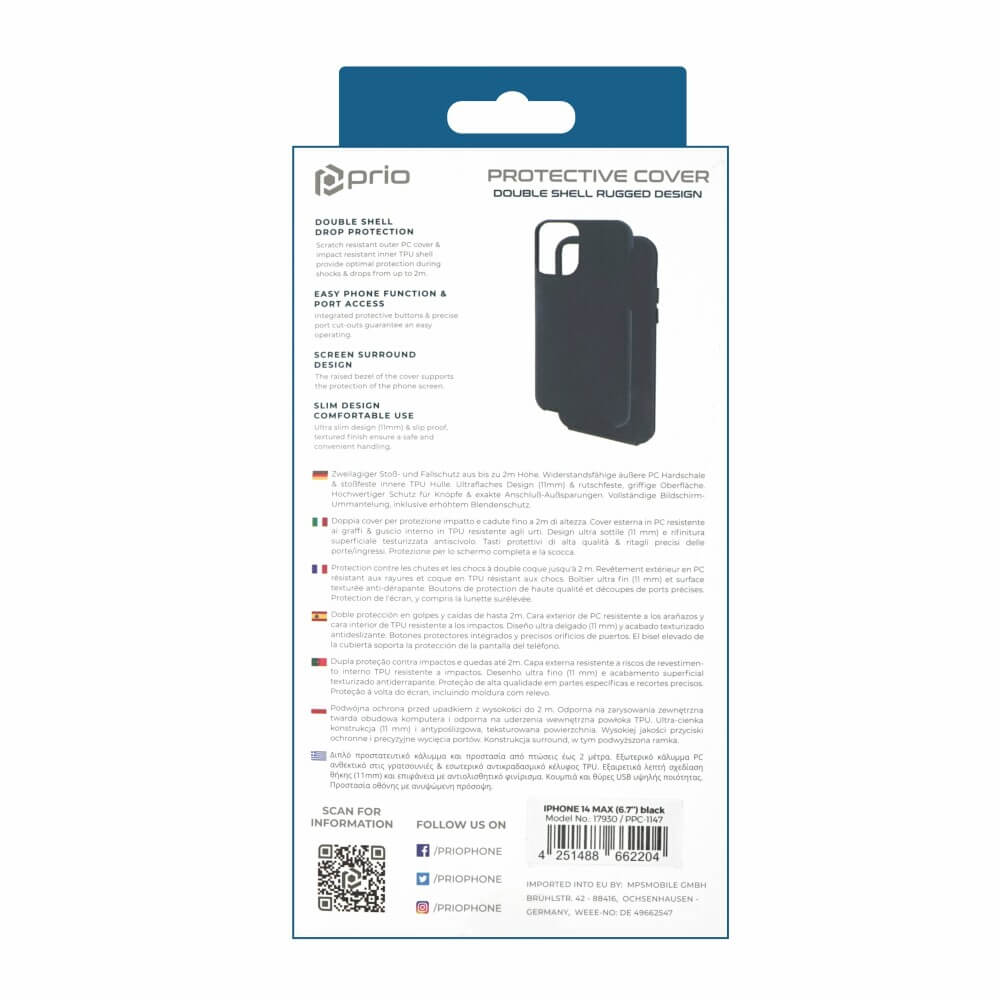 Prio Protective Hybrid Cover - хибриден кейс с най-висока степен на защита за iPhone 14 Plus (черен)