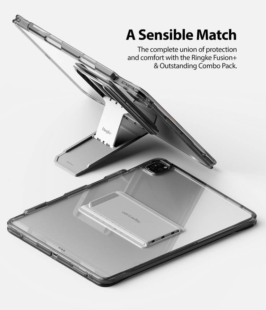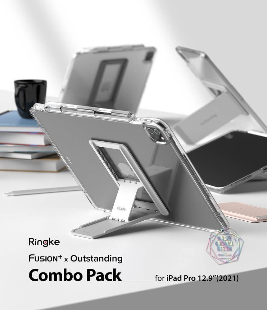 Ringke Fusion Combo Case - удароустойчив хибриден кейс и сгъавема поставка за iPad Pro 12.9 M1 (2021) (тъмносив)