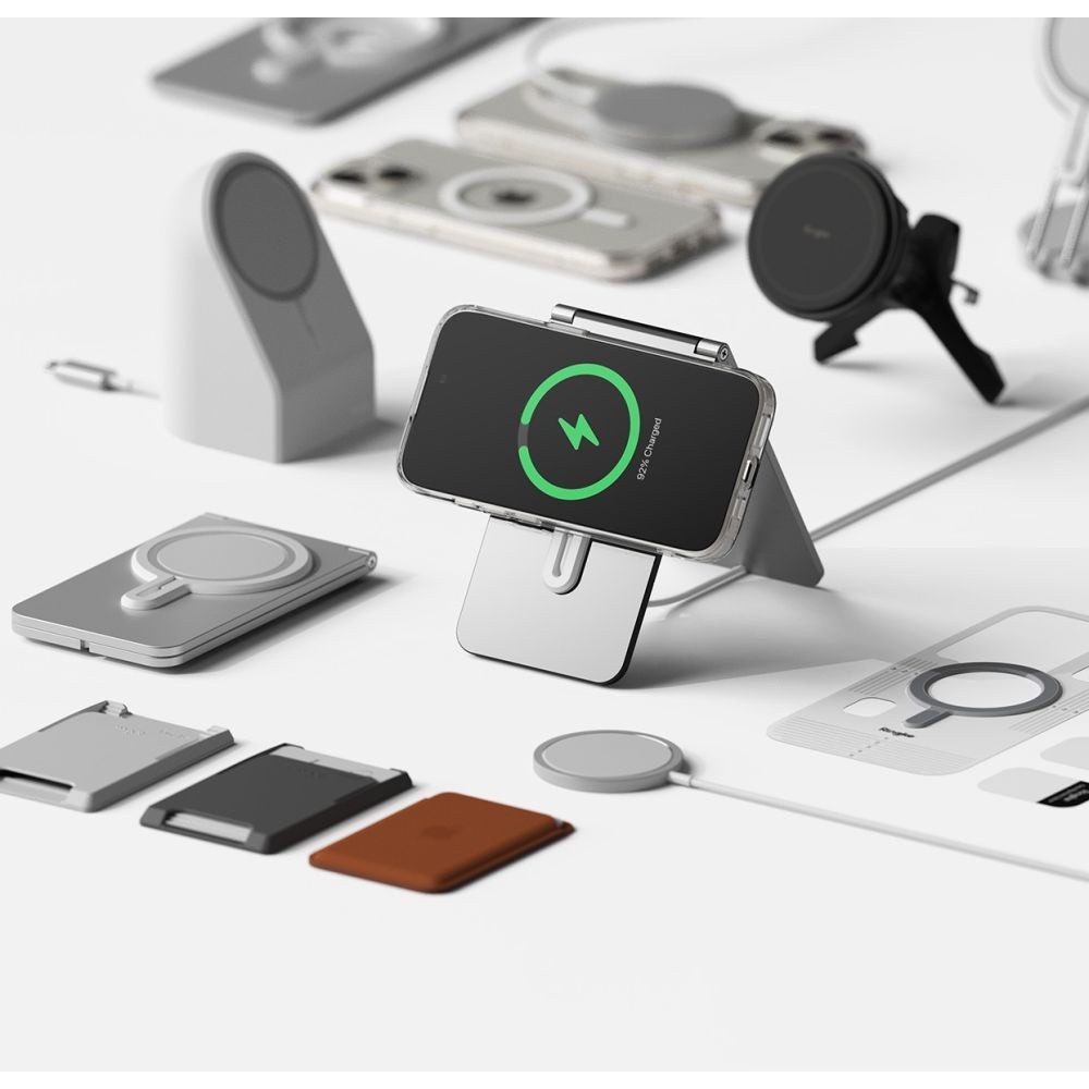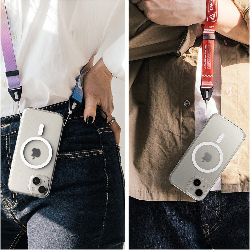 - • Кейсът е снабден с магнит, благодарение на който е съвместим с MagSafe аксесоари. Това е изцяло нов стандарт за бързо и лесно свързване на аксесоари и безжични зарядни устройства