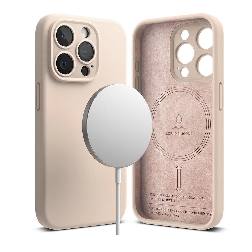 Ringke Liquid Silicone Magnetic Case - силиконов (TPU) калъф с MagSafe за iPhone 15 Pro (розов)