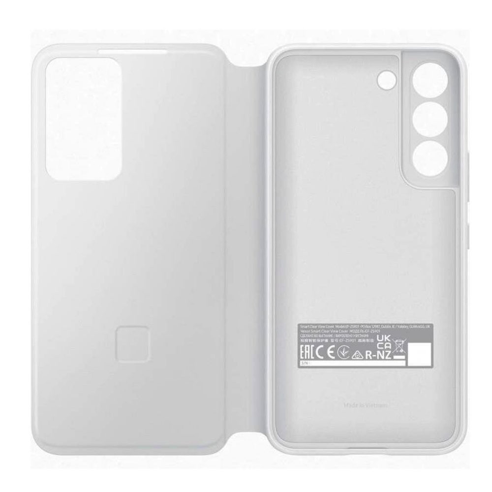 Samsung Clear View Cover EF-ZS906CW - оригинален кейс с антибактериално покритие, през който виждате информация от дисплея за Samsung Galaxy S22 Plus (бял)