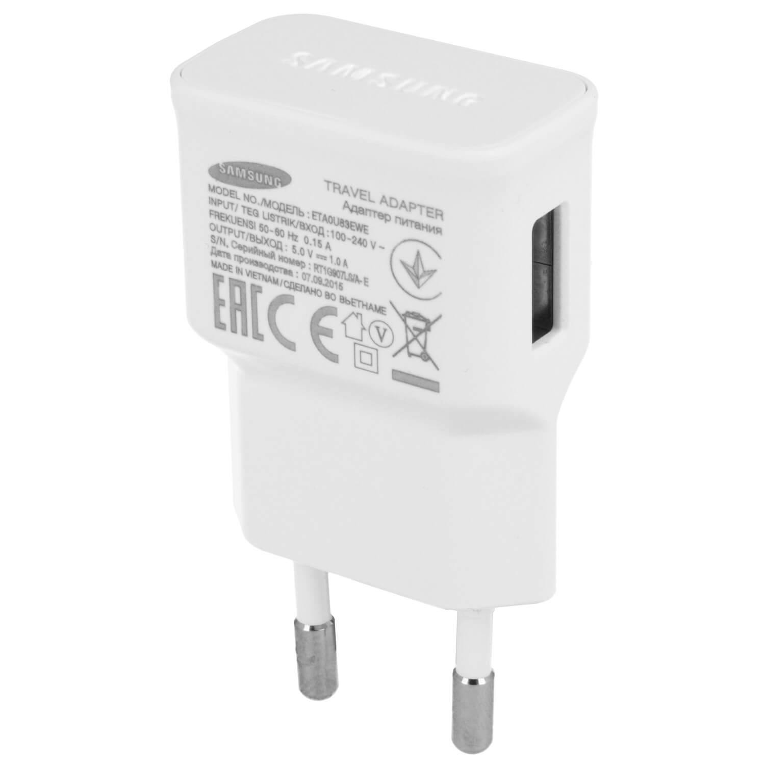 Samsung Travel Charger ETA0U83EWE - захранване за ел. мрежа с USB изход 1000mA за Samsung мобилни устройства (бял) (bulk)