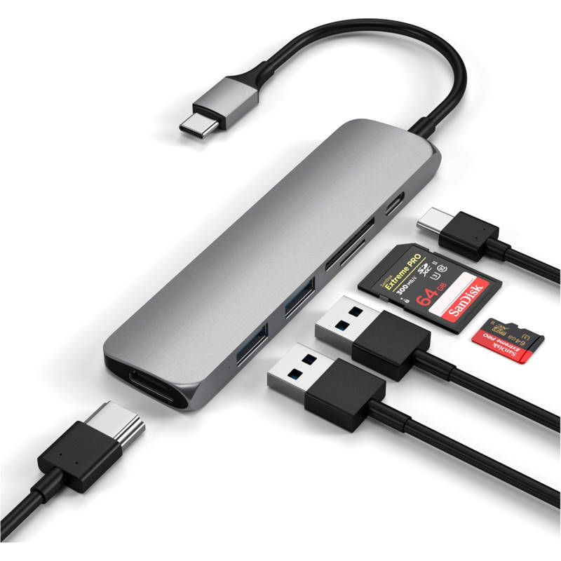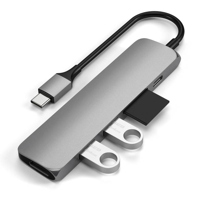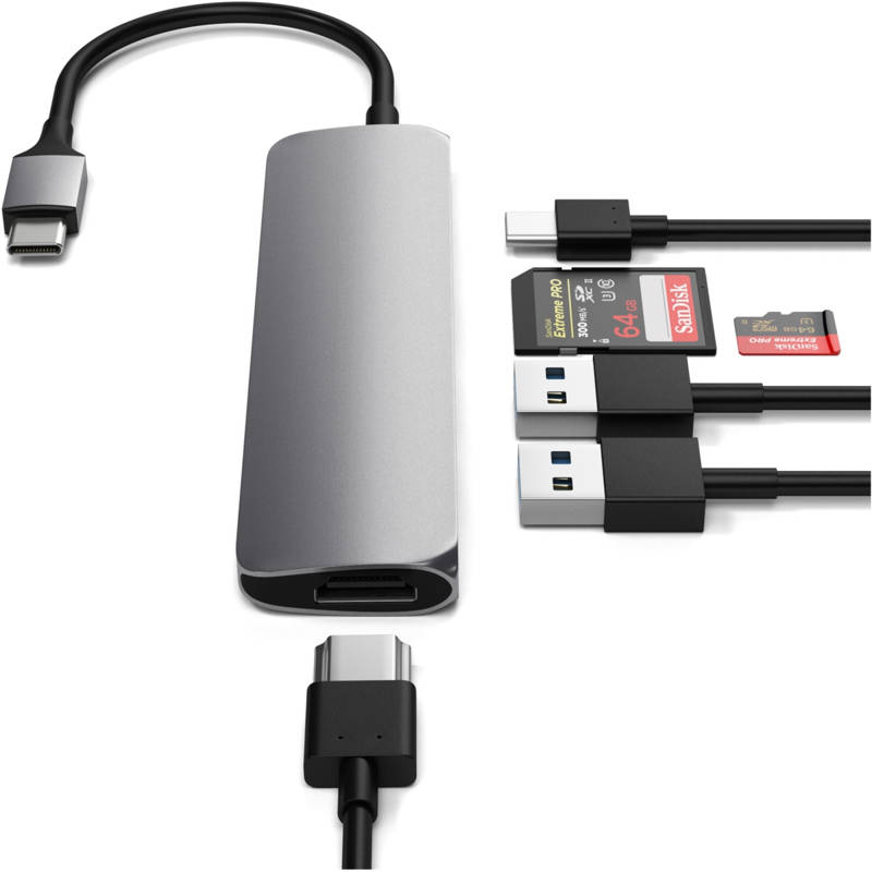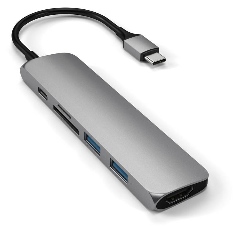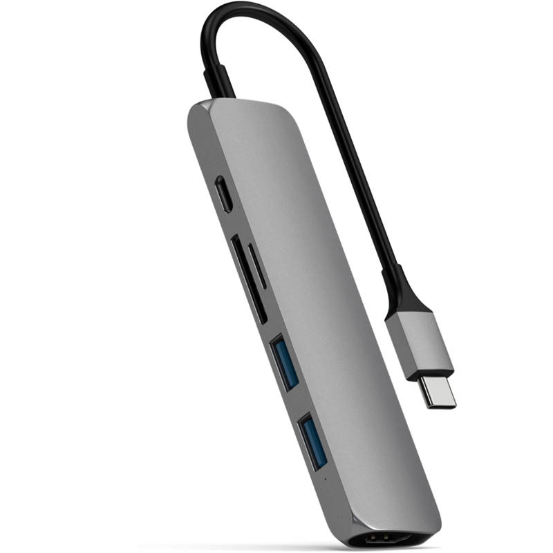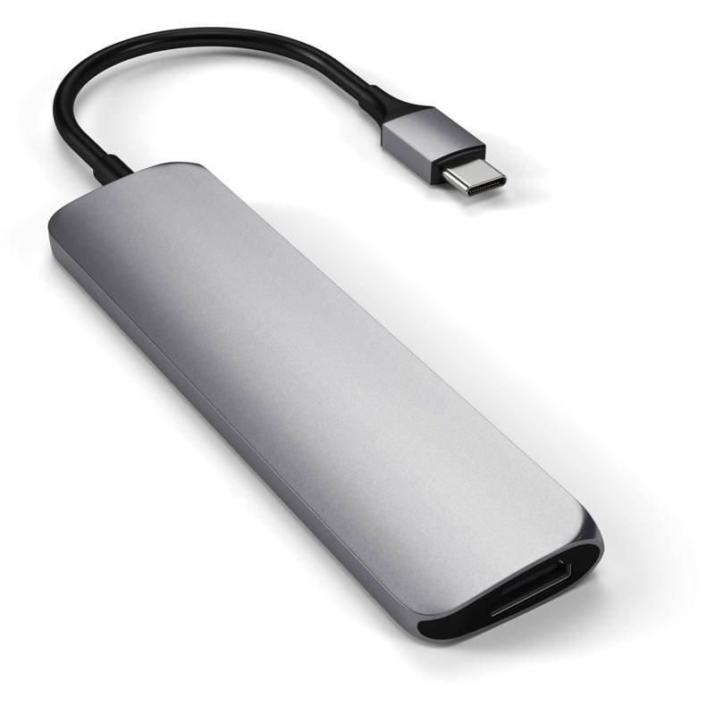 Satechi USB-C Multiport Adapter V2 - мултифункционален хъб за свързване на допълнителна периферия за компютри с USB-C (тъмносив)