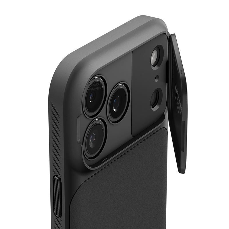 Силиконов (TPU) калъф с капак за камерата с MagSafe за iPhone 17 Pro - Spigen Optik Armor MagSafe Case (черен)