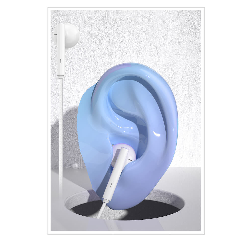 - Дизайнът на слушалките е дефиниран от геометрията на човешкото ухо, което ги прави изключително удобни за продължително носене. Перфектно пасване.