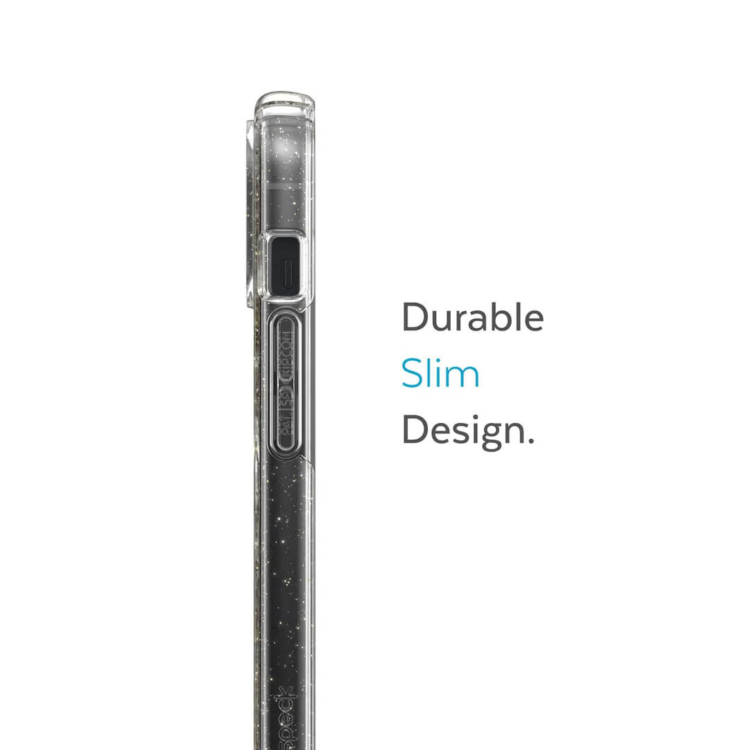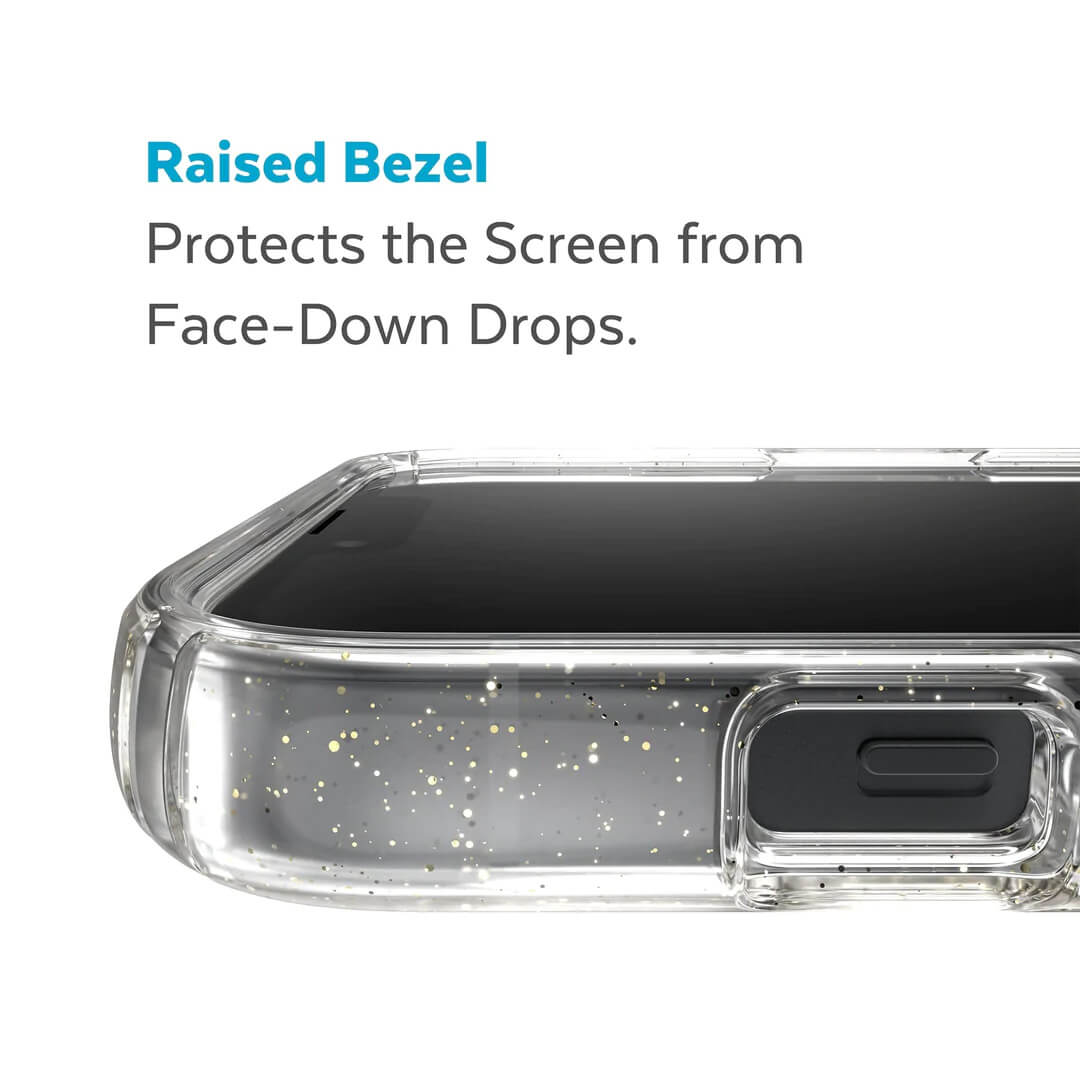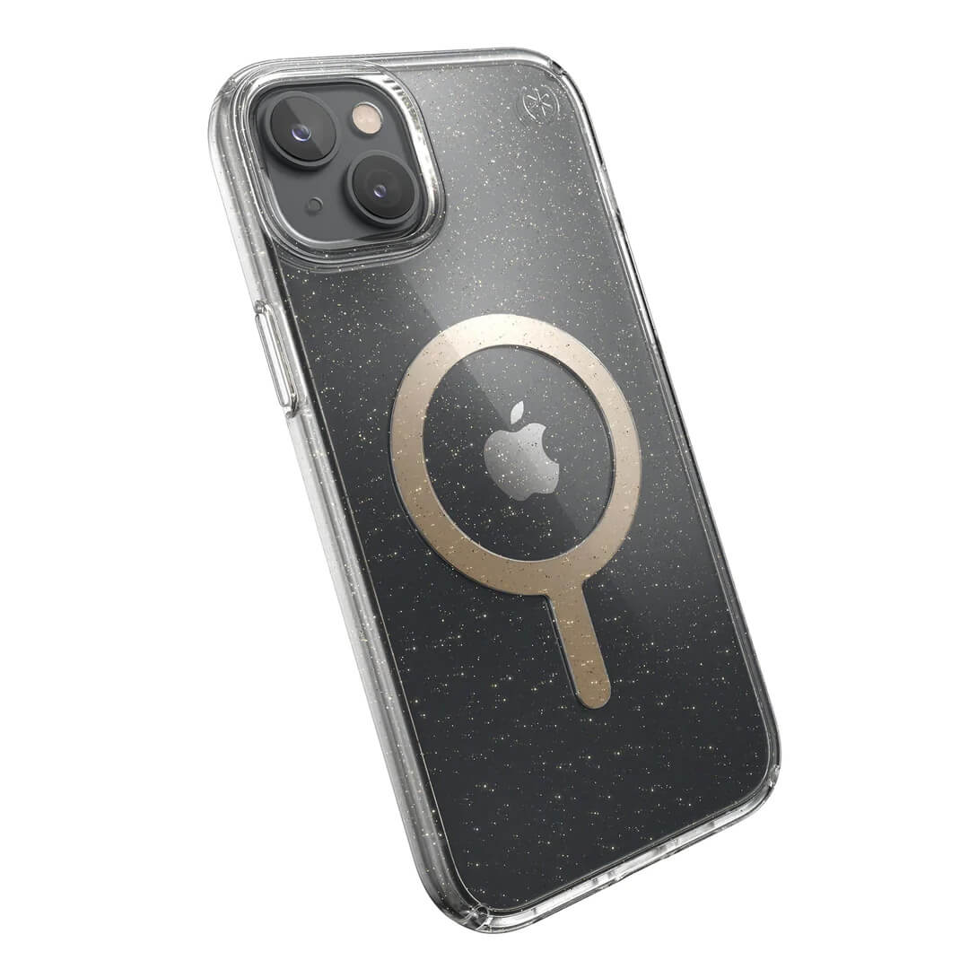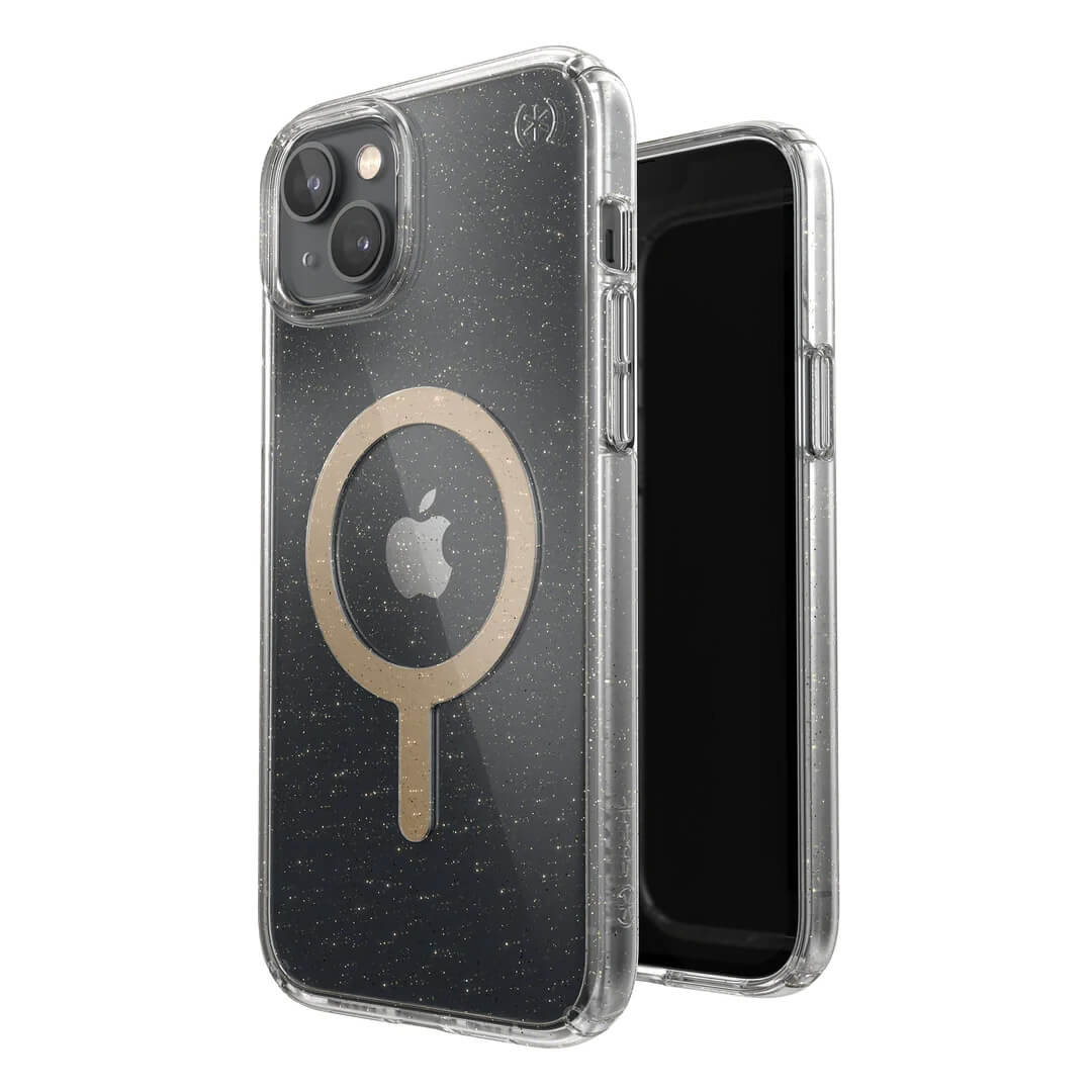 Speck Presidio Glitter Perfect Clear - удароустойчив хибриден кейс с Magsafe за iPhone 14 Plus (прозрачен)