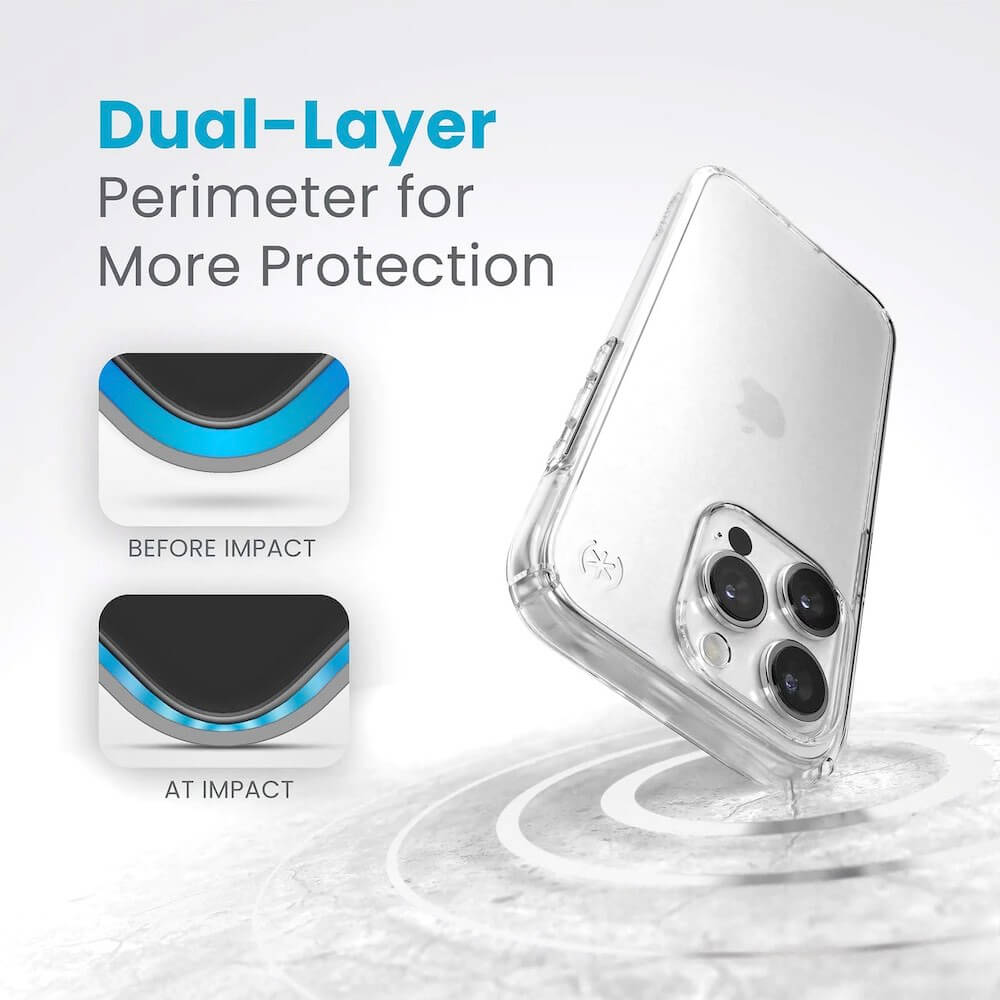 - • Двуслоен дизайн с външна част от поликарбонат и вътрешна част с Impactum технология разработена от Speck, която абсорбира енергията при удар и защитава устройството при изпускане