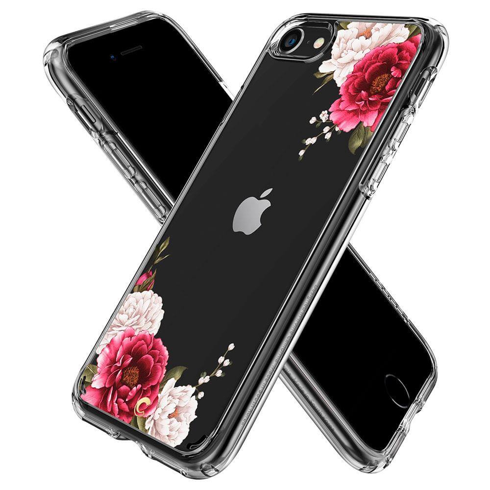Spigen Ciel Red Floral Case - дизайнерски удароустойчив кейс за iPhone SE (2020), iPhone 8, iPhone 7 (прозрачен)