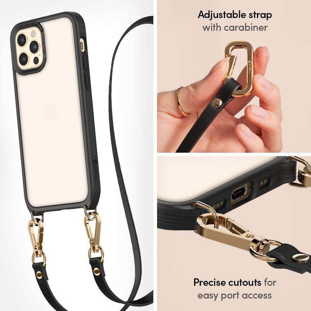 Spigen Cyrill Classic Charm Case - дизайнерски кейс с висока защита и връзка за носене за iPhone 12 Pro, iPhone 12 (черен-прозрачен)