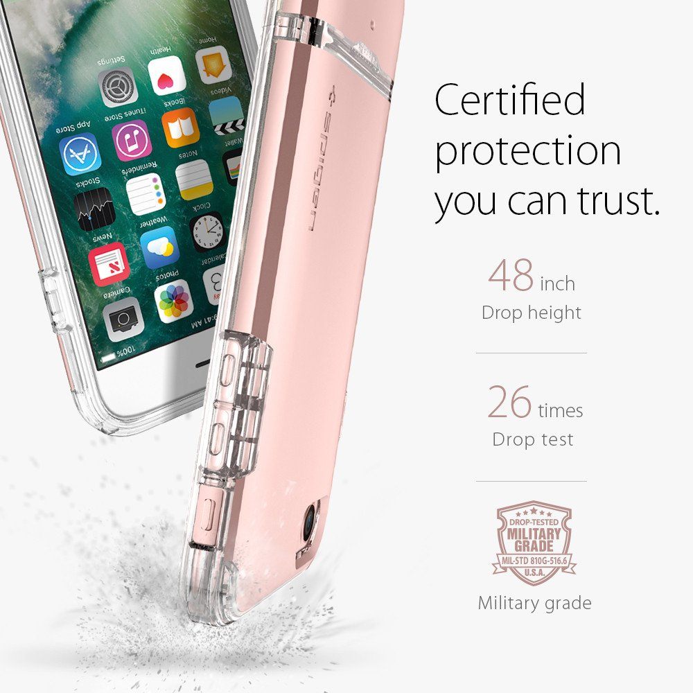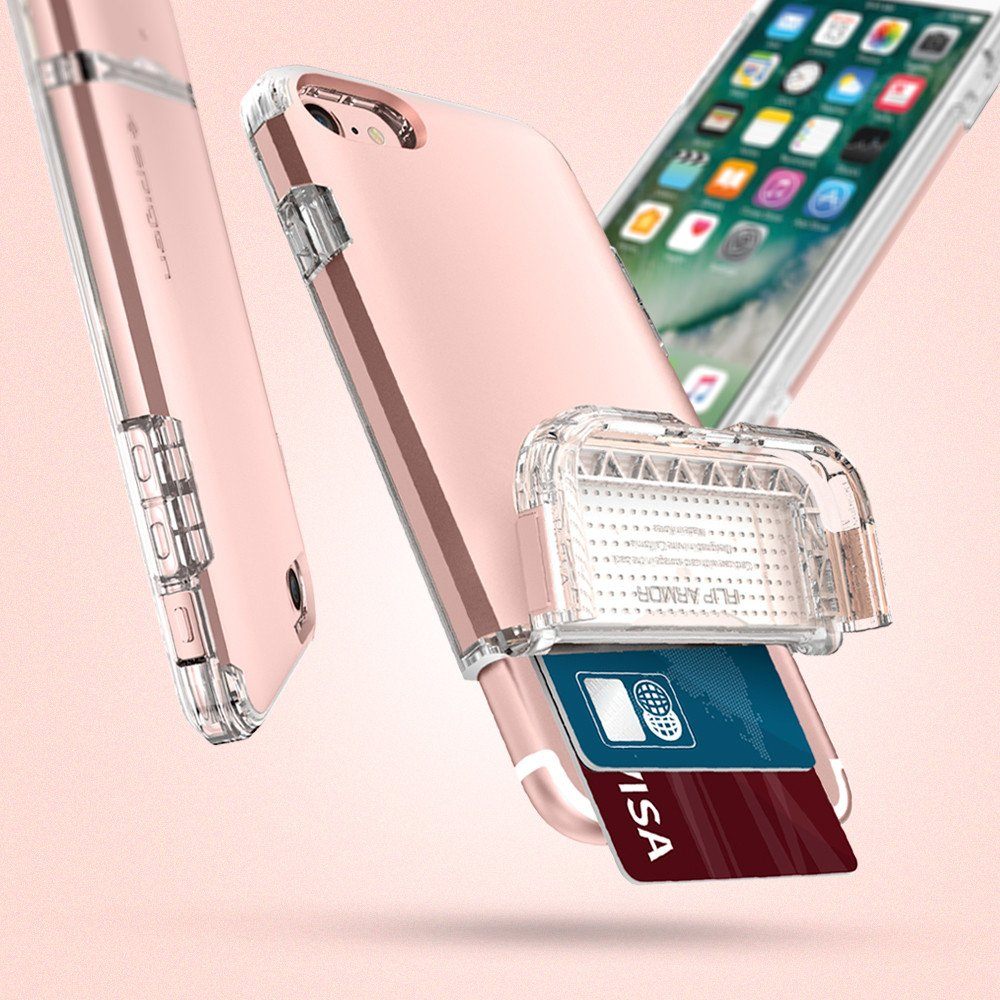 Spigen Flip Armor Case - хибриден кейс с отделение за кр. карти и най-висока степен на защита за iPhone 8, iPhone 7 (розово злато)