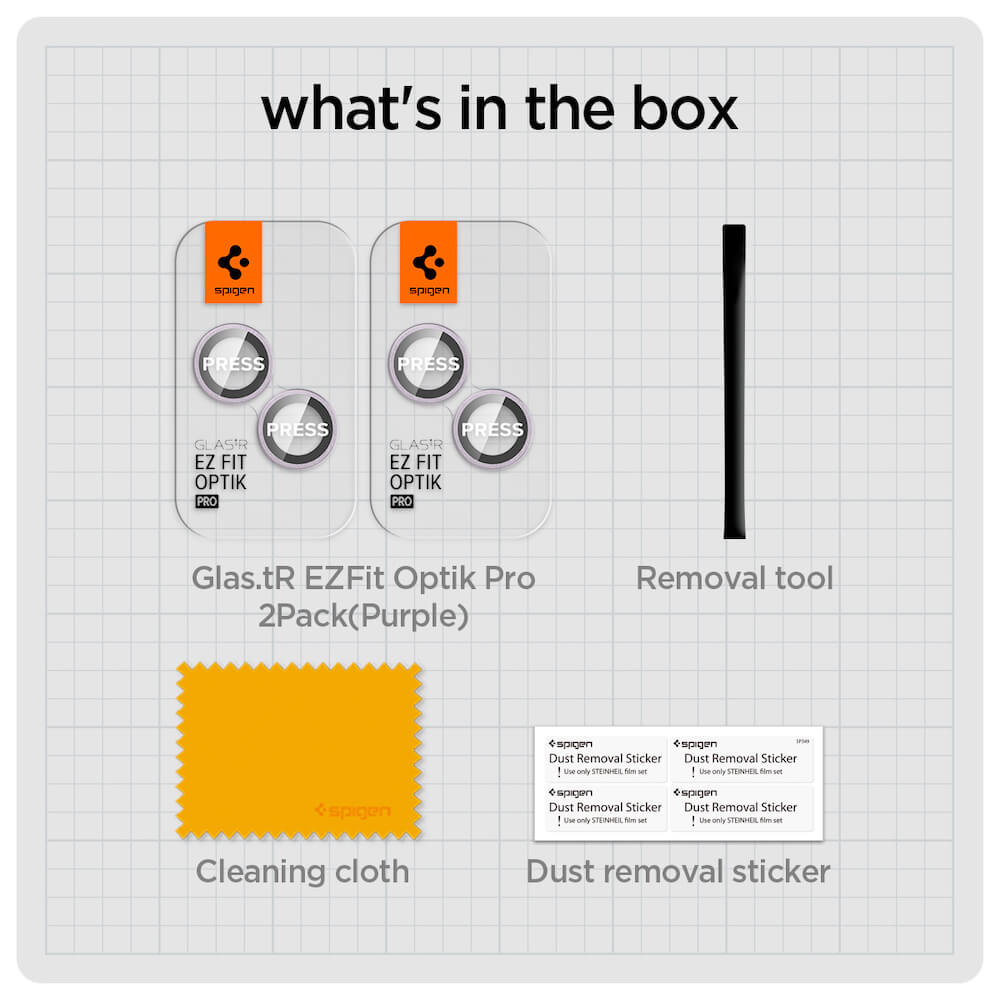 Spigen Optik Pro tR Ez Fit Lens Protector - 2 комплекта предпазни стъклени лещи за камерата на iPhone 14, iPhone 14 Plus (лилав)
