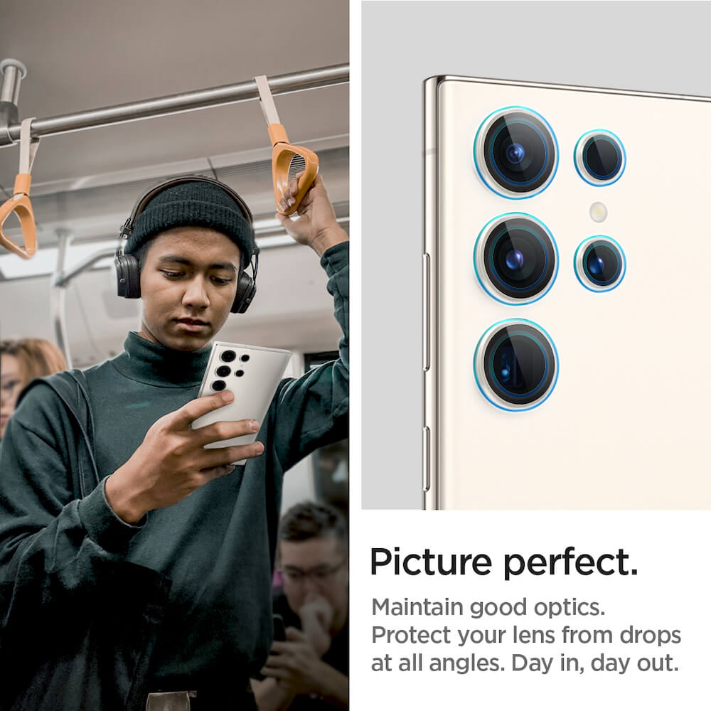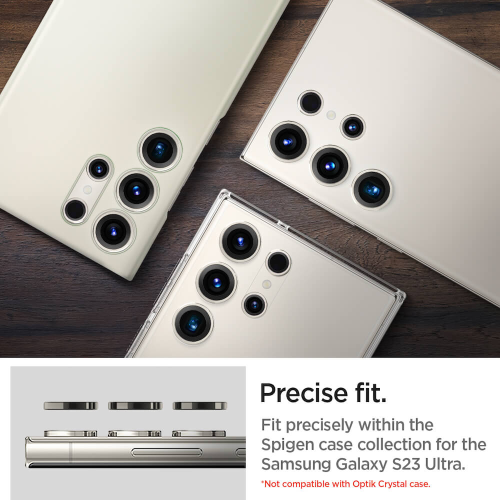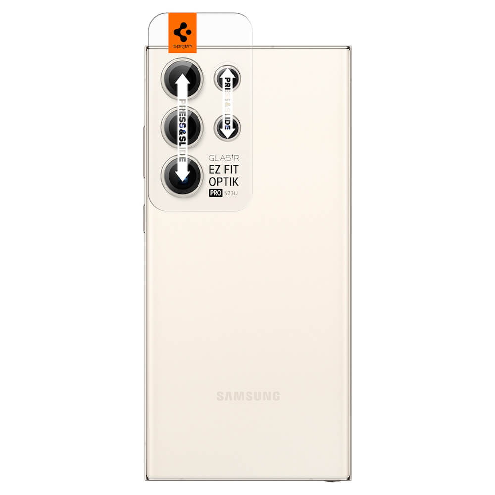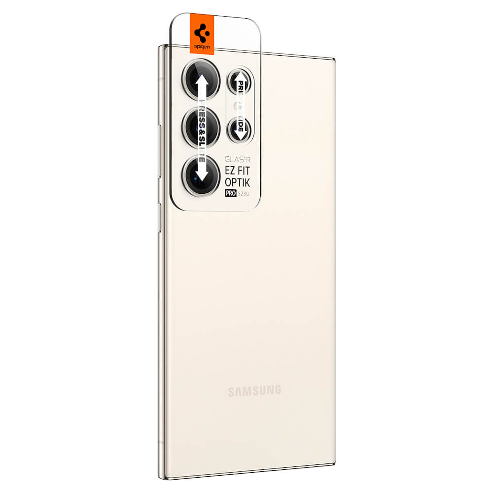 Spigen Optik Pro tR Ez Fit Lens Protector 2 Pack - 2 комплекта предпазни стъклени лещи за камерата на Samsung Galaxy S23 Ultra (бежов)