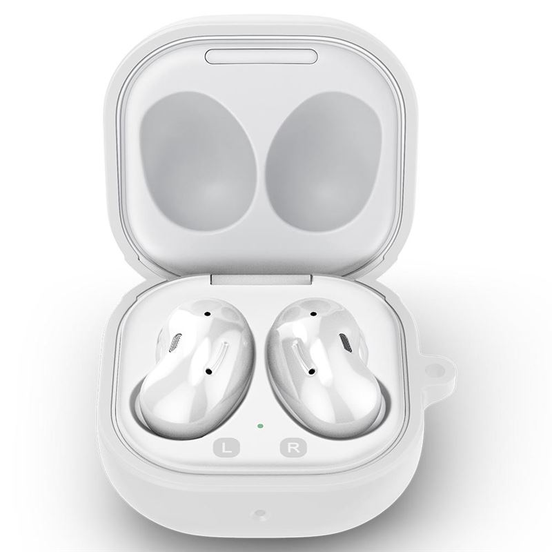 Spigen Silicone Fit Case - силиконов калъф с карабинер за Samsung Galaxy Buds Plus, Samsung Galaxy Buds (бял)