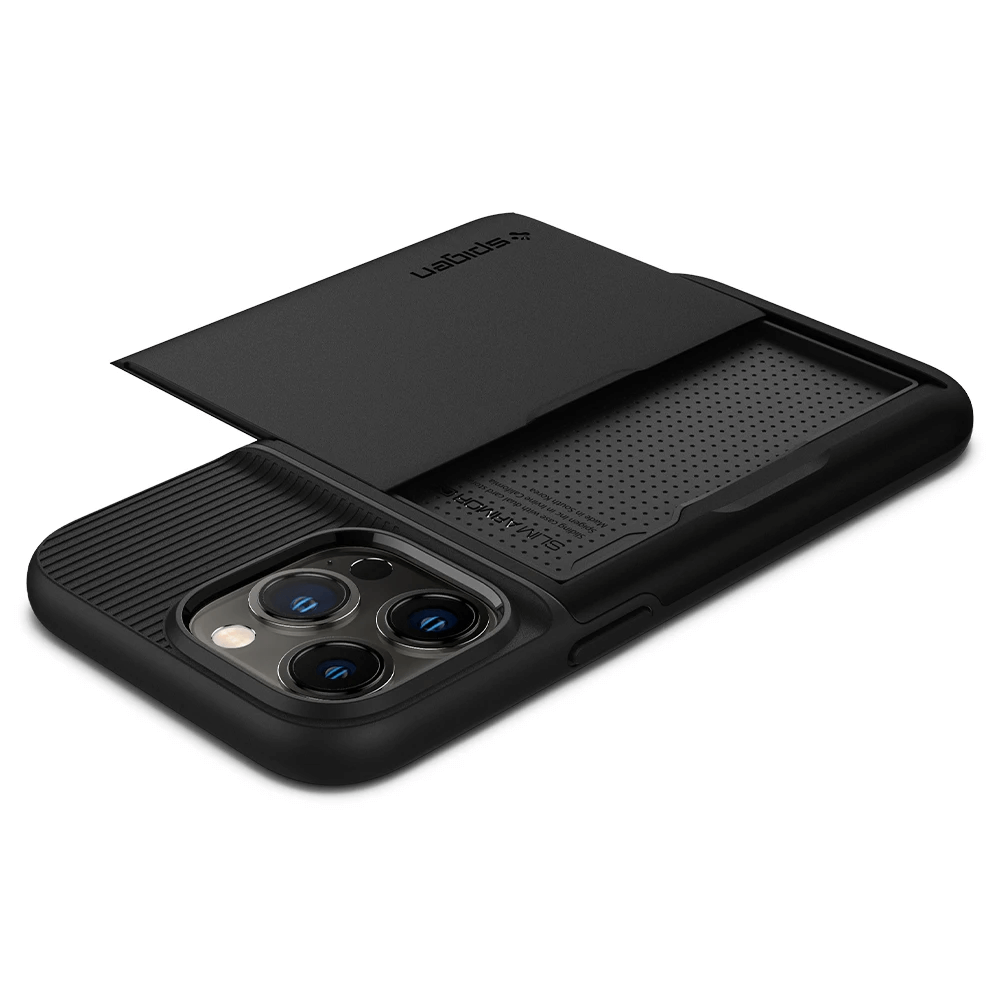 Spigen Slim Armor CS Case - хибриден кейс с отделение за кр. карти и най-висока степен на защита за iPhone 13 Pro (черен)