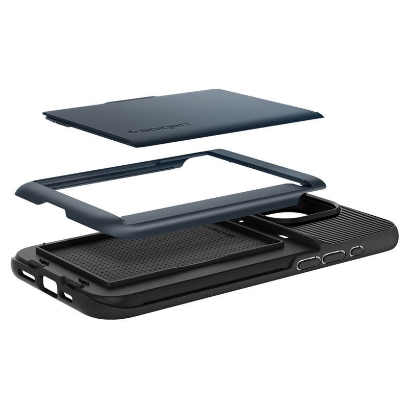 Spigen Slim Armor CS Case - хибриден кейс с отделение за кр. карти и най-висока степен на защита за iPhone 15 Pro (тъмносин)