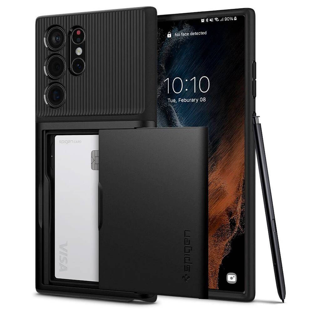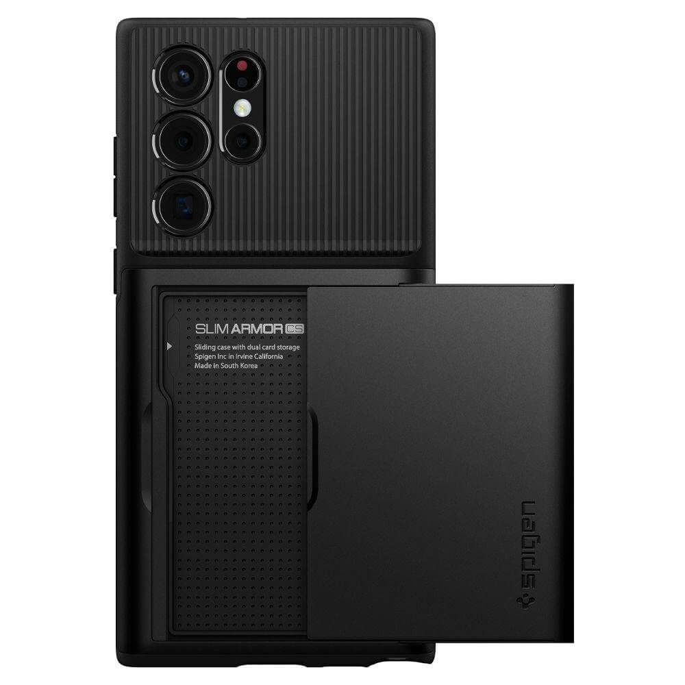 Spigen Slim Armor CS Case - хибриден кейс с отделение за кр. карти и най-висока степен на защита за Samsung Galaxy S22 Ultra (черен)