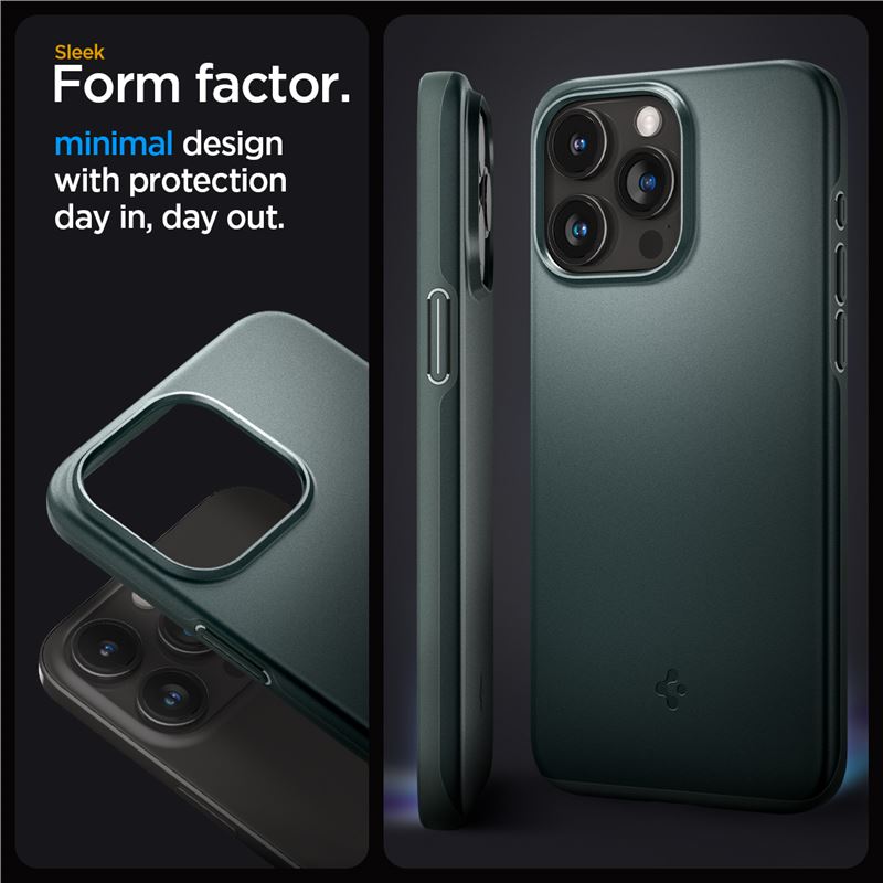 Spigen Thin Fit Case - качествен тънък матиран кейс за iPhone 15 Pro Max (зелен)