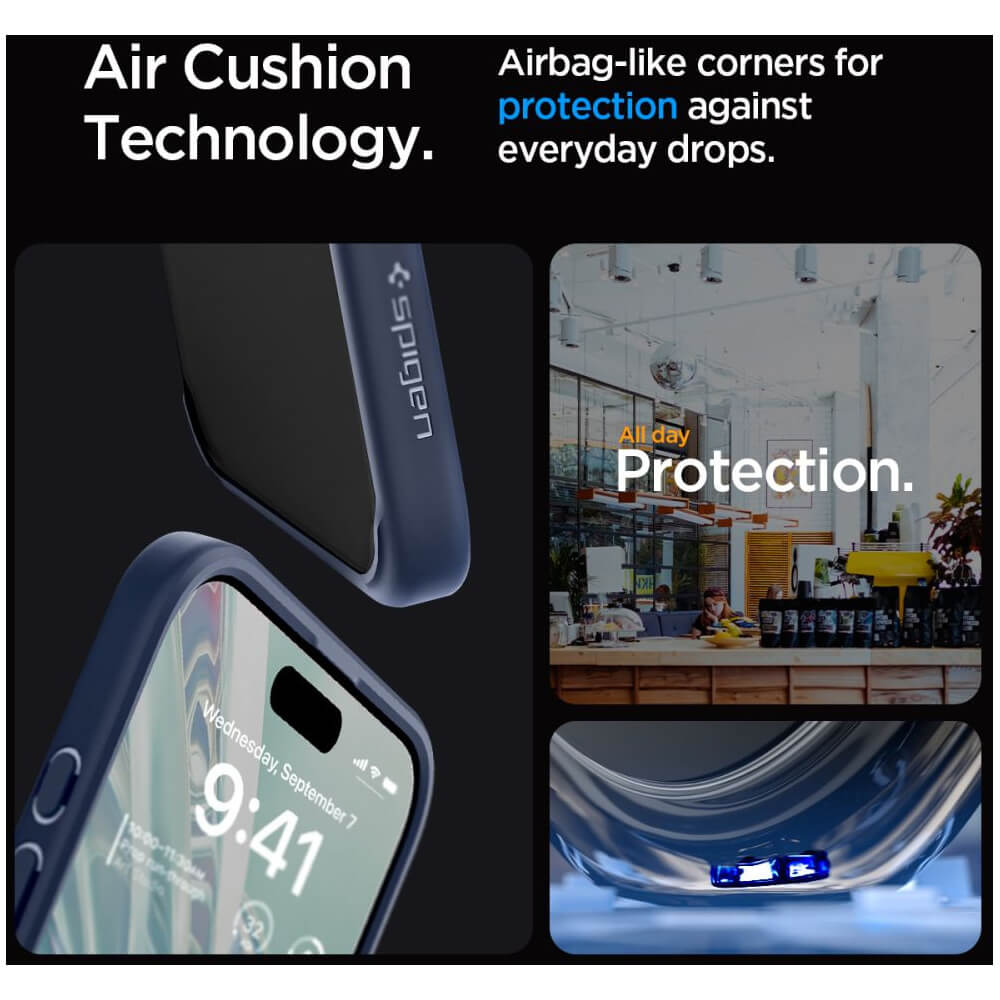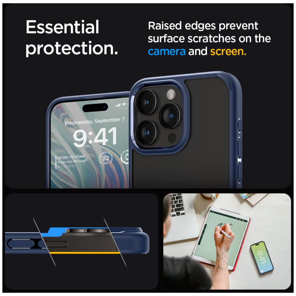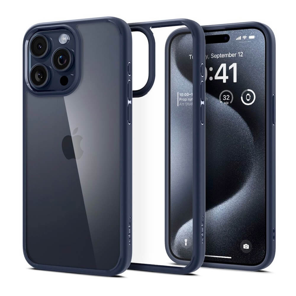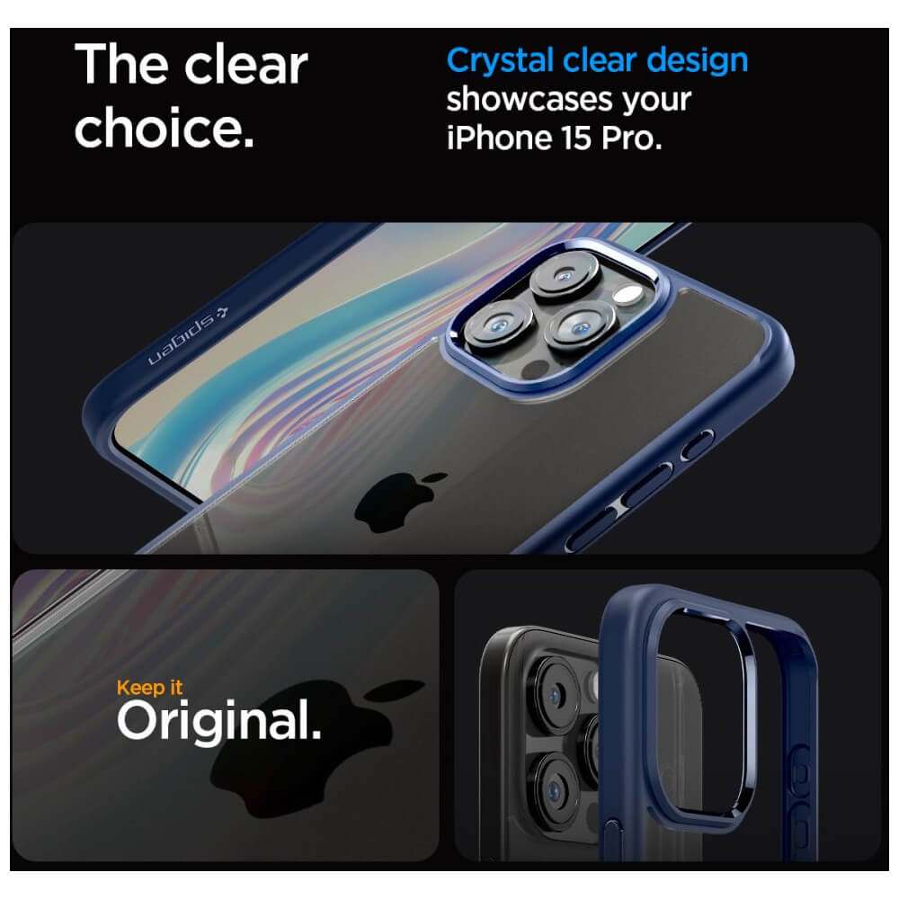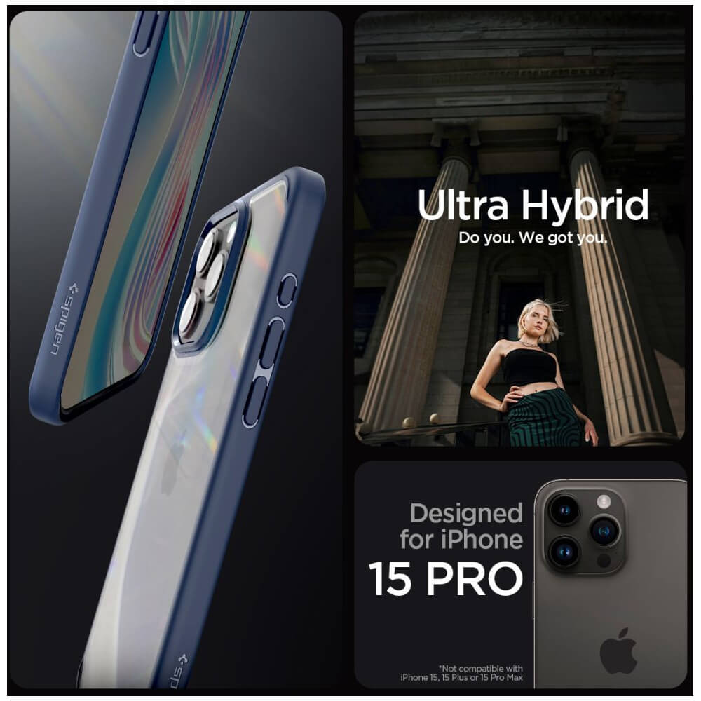 Spigen Ultra Hybrid Case - хибриден кейс с висока степен на защита за iPhone 15 Pro (син-прозрачен)