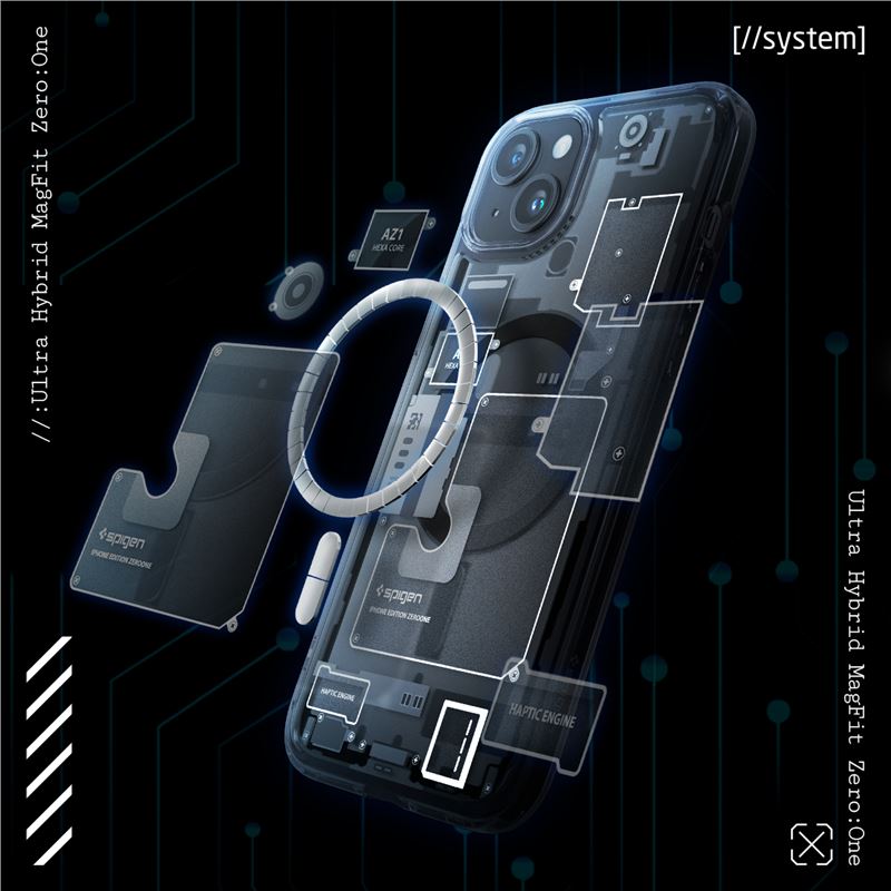 Spigen Ultra Hybrid MagSafe Zero One Case - хибриден кейс с висока степен на защита с MagSafe за iPhone 15 (прозрачен-черен)