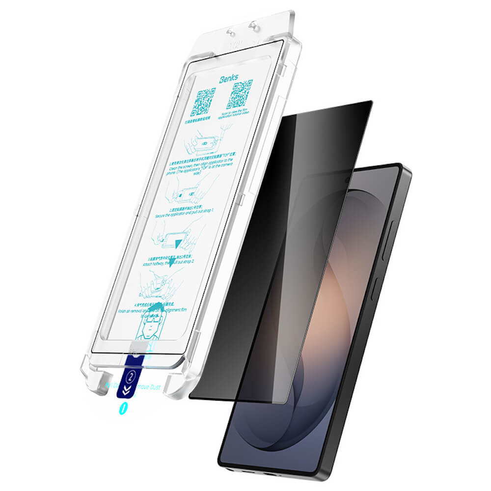 - В комплекта: 1 х Benks Ultra Shield Privacy Tempered Glass, 1 x рамка за правилно поставяне, 1 x комплект за поставяне