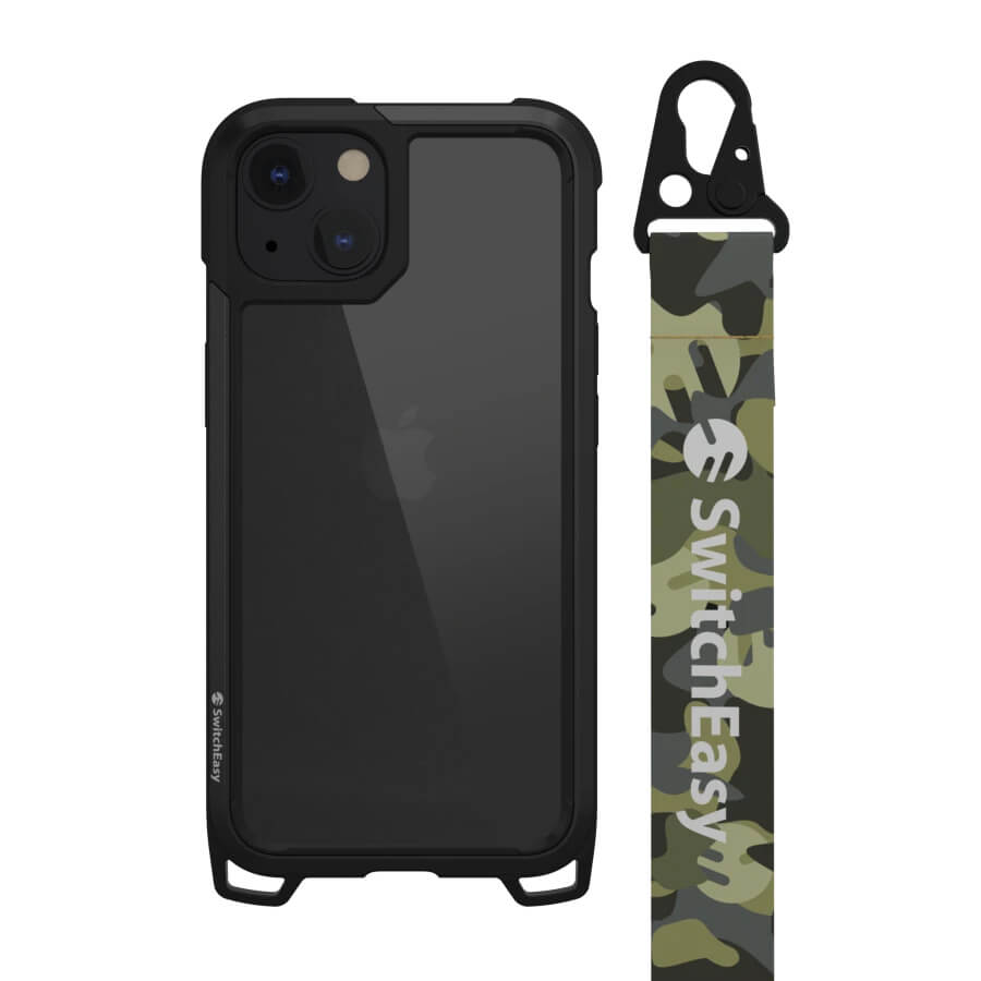 SwitchEasy Odyssey Camo Green Case - удароустойчив хибриден кейс с връзка и карабинер за iPhone 13 (черен)
