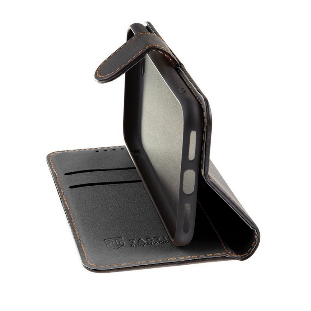 Tactical Field Notes Leather Flip Case - кожен калъф, тип портфейл с поставка и отделение за кр. карти за iPhone 15 (черен)