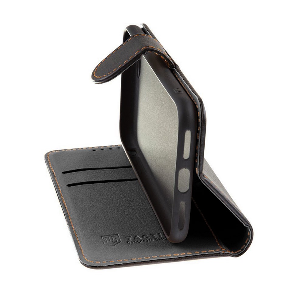 Tactical Field Notes Leather Flip Case - кожен калъф, тип портфейл с поставка и отделение за кр. карти за iPhone 15 Pro (черен)