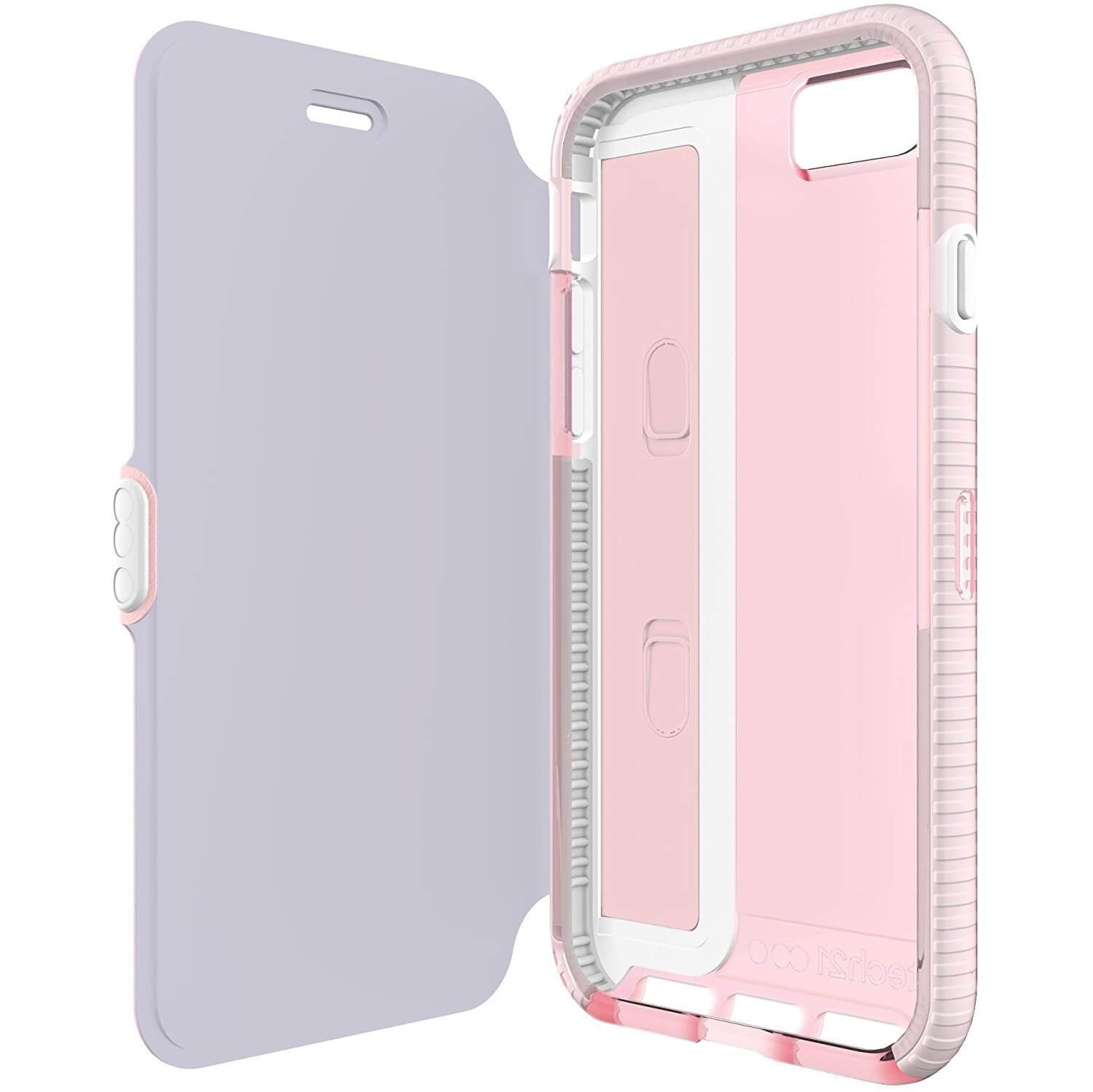 Tech21 Evo Wallet Case - кожен флип калъф с отделящ се силиконов кейс с висока защита за iPhone 8, iPhone 7 (розов)