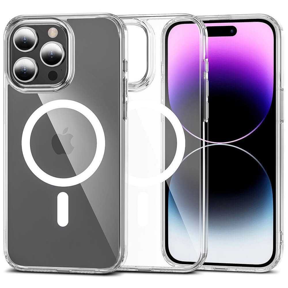 - • Калъфът е снабден с магнит, благодарение на който е съвместим с MagSafe аксесоари. Това е изцяло нов стандарт на Apple за бързо и лесно свързване на аксесоари и безжични зарядни устройства