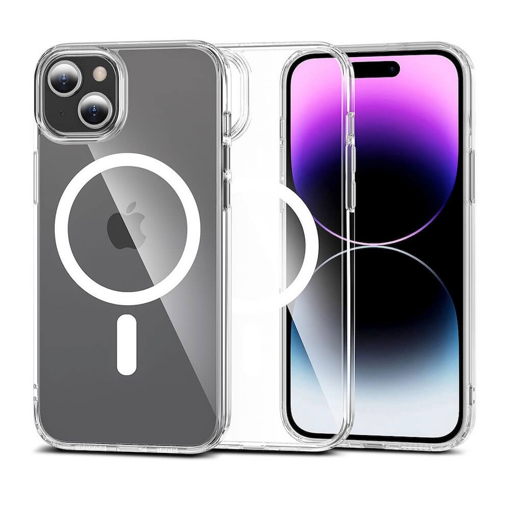 - • Калъфът е снабден с магнит, благодарение на който е съвместим с MagSafe аксесоари. Това е изцяло нов стандарт на Apple за бързо и лесно свързване на аксесоари и безжични зарядни устройства