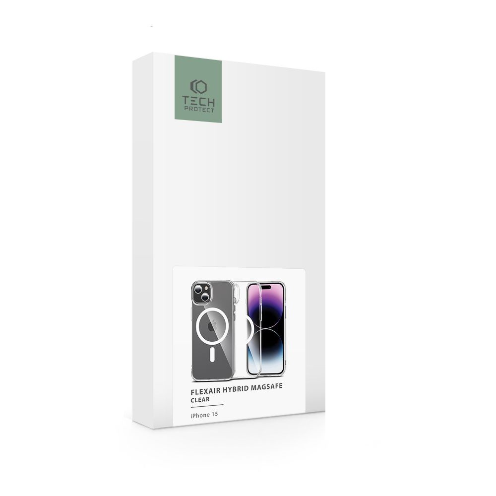 Tech-Protect Flexair Hybrid MagSafe Case - хибриден удароустойчив кейс с MagSafe за iPhone 15 (прозрачен)