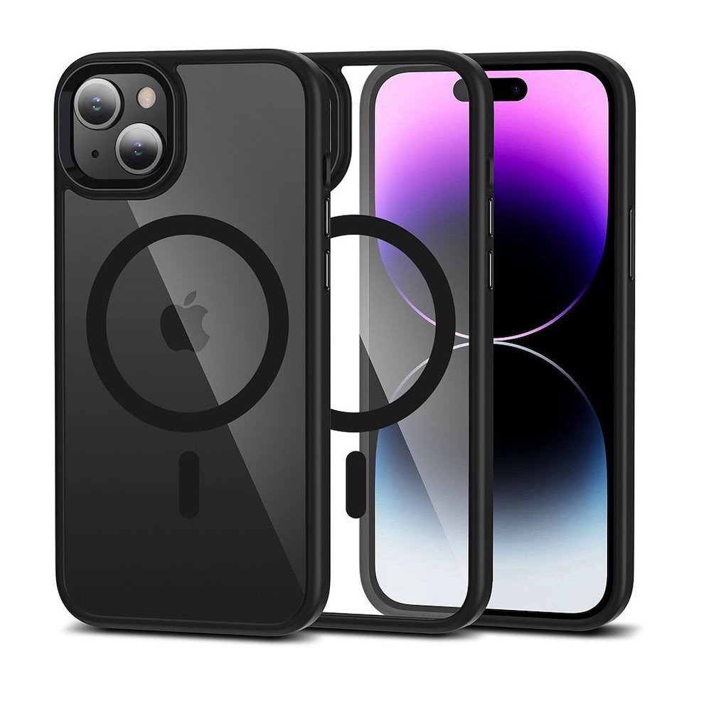 Tech-Protect MagMat MagSafe Case - хибриден удароустойчив кейс с MagSafe за iPhone 15 (черен-прозрачен)