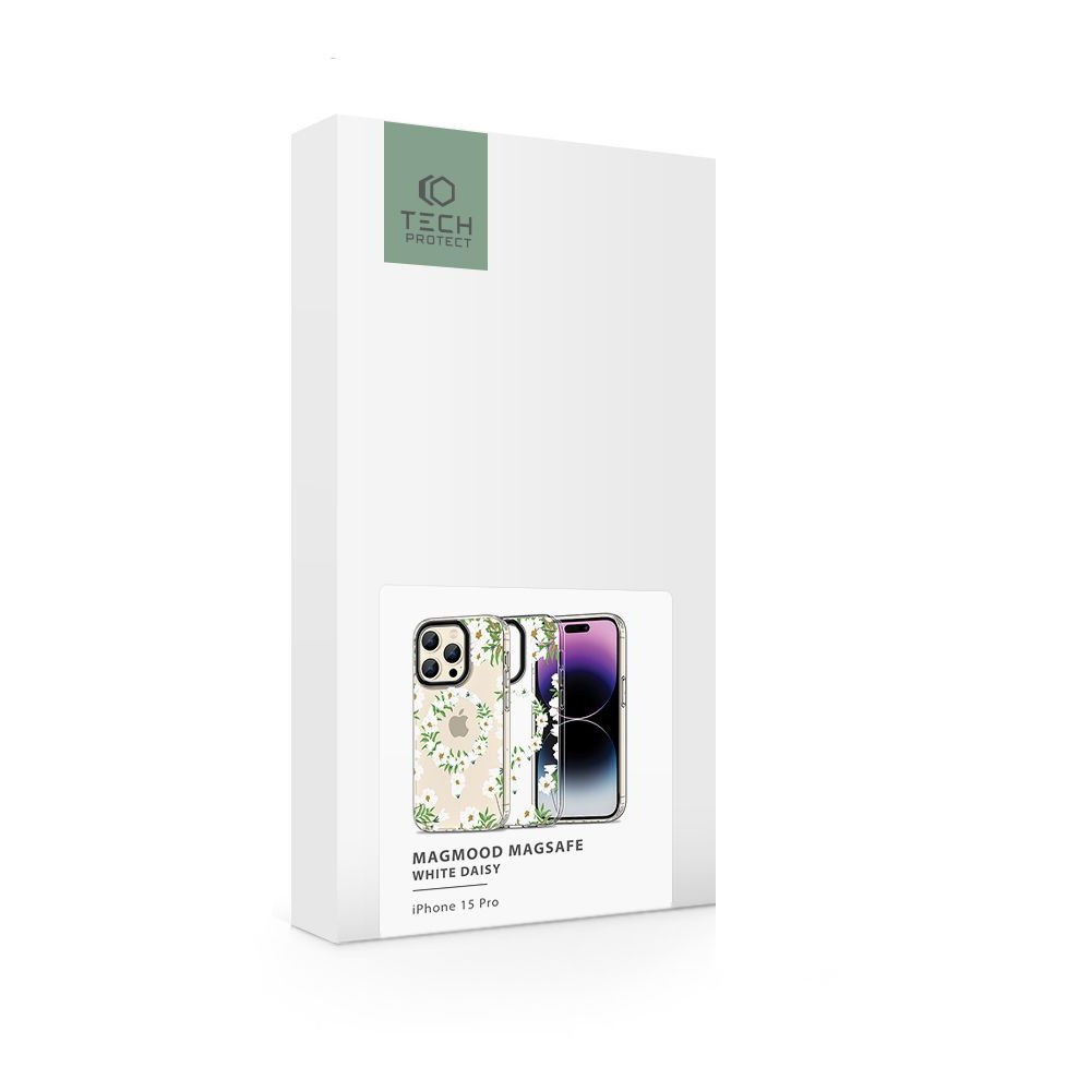 Tech-Protect MagMood White Daisy Hybrid MagSafe Case - хибриден удароустойчив кейс с MagSafe за iPhone 15 Pro (цветни мотиви)