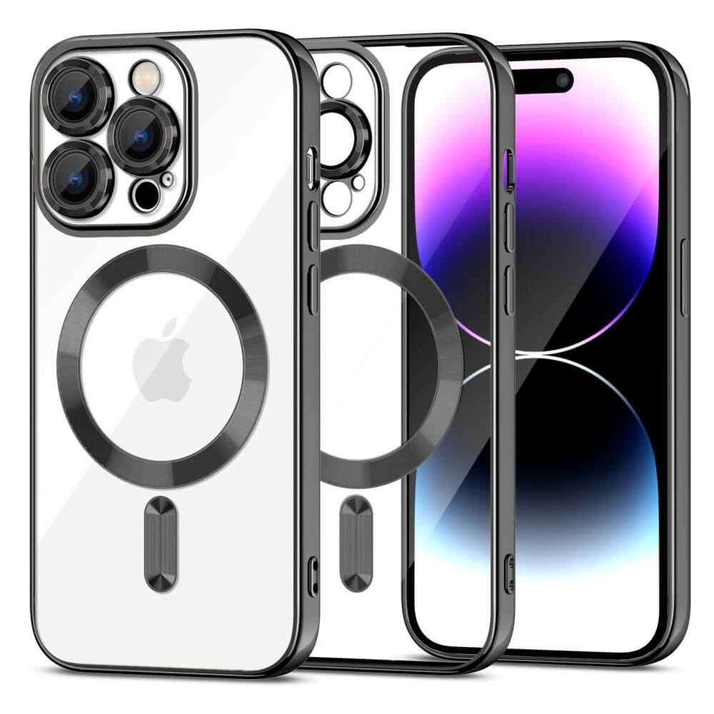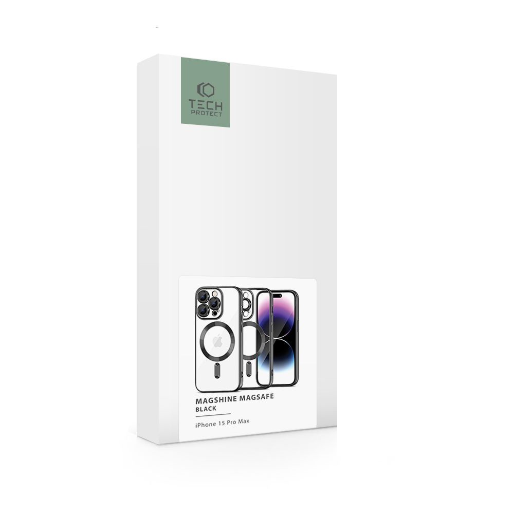 Tech-Protect MagShine MagSafe Case - тънък силиконов (TPU) калъф с MagSafe за iPhone 15 Pro Max (черен-прозрачен)