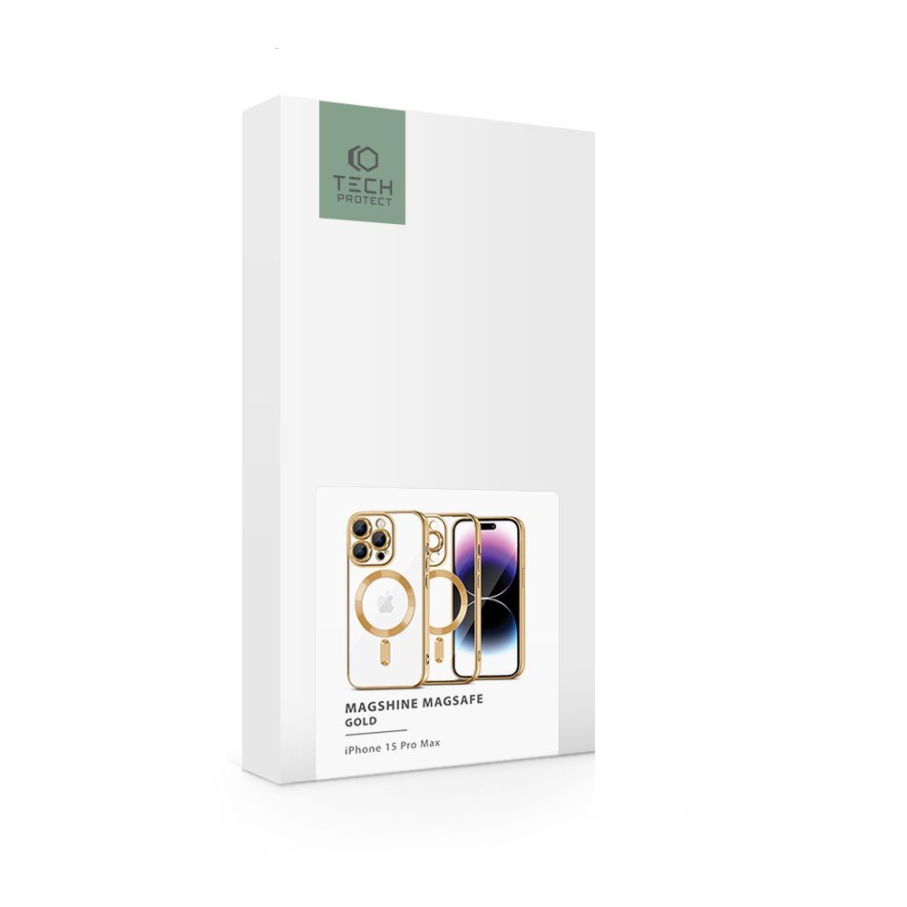 Tech-Protect MagShine MagSafe Case - тънък силиконов (TPU) калъф с MagSafe за iPhone 15 Pro Max (златист-прозрачен)