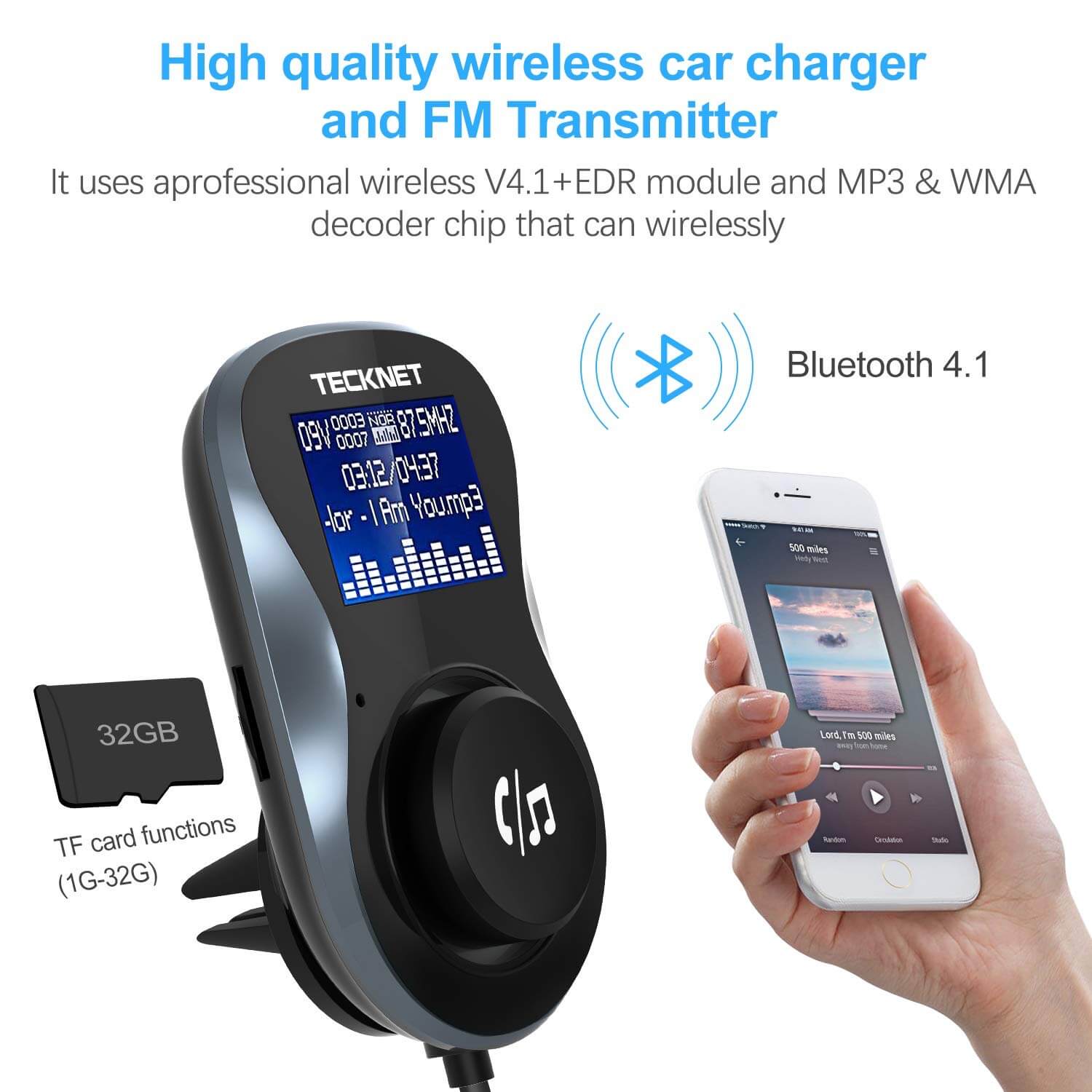 §  Tecknet F10039 свързва телефона с FM стереото на автомобила посредством FM вълни, за да може да слушаш любимата музика по време на път