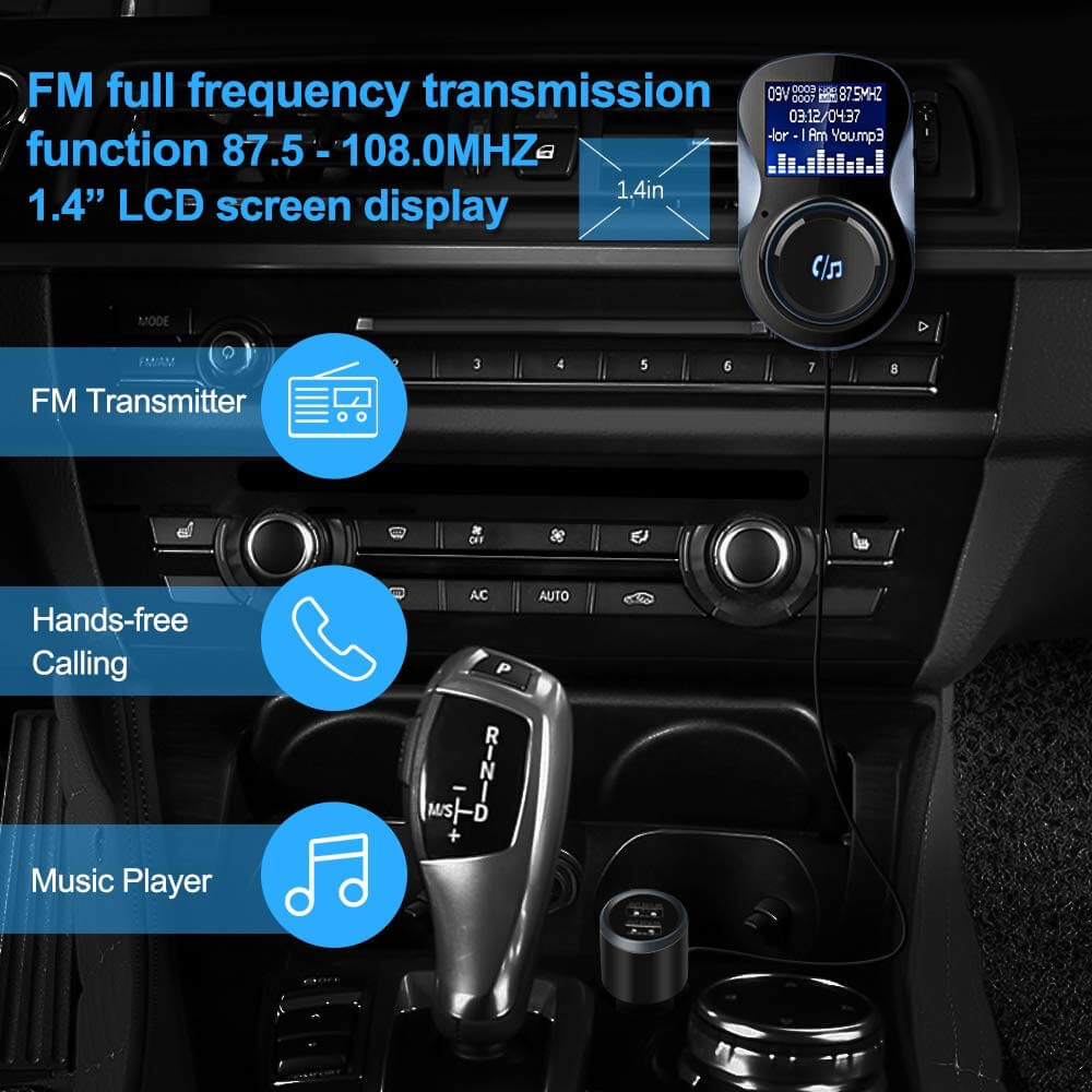 TeckNet F10039 Bluetooth FM Transmitter - блутут FM трансмитер с поставка и зарядно за кола за мобилни устройства (черен)